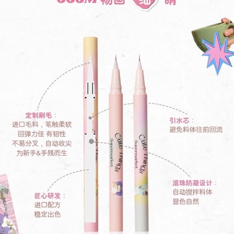 Msia readystock现货wow beauty初恋马克系列刀锋大漂亮卧蚕液笔Flortte So Light Liquid Eyeliner chu chu mark怪美莉亚好細花洛莉亚彩色眼线笔極細眼線液筆眼线液笔牛奶系列