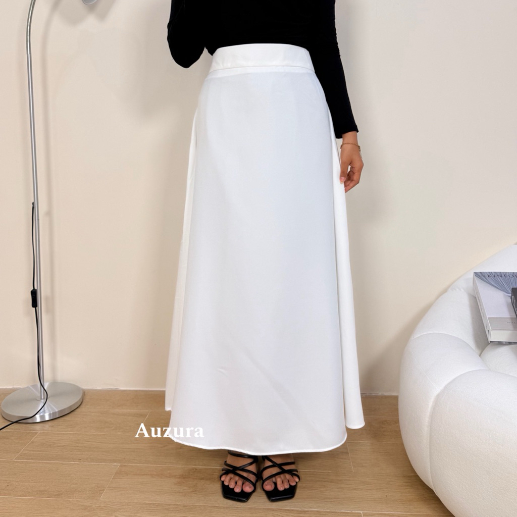 Auzura - FUJI Midi Maxi Skirt | Work Skirt | Korean Style Formal Casual Women's Skirt | High Waist Flowy Thick Skirt with Long Elastic Waist