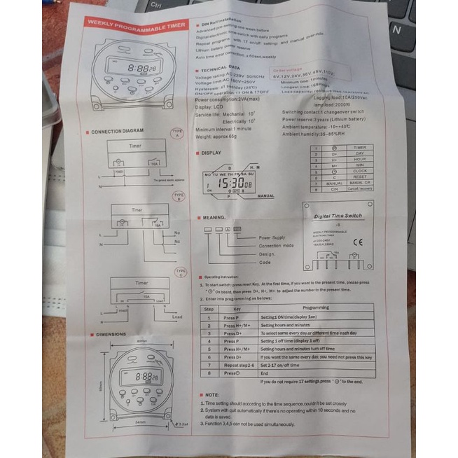 CN101A Programmabile Timer 12VDC/AC atau 220VAC