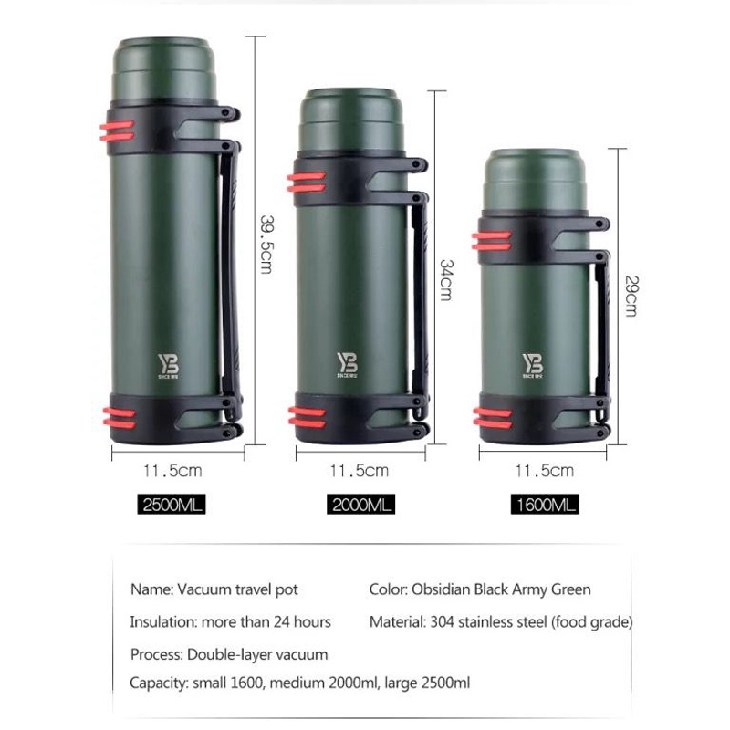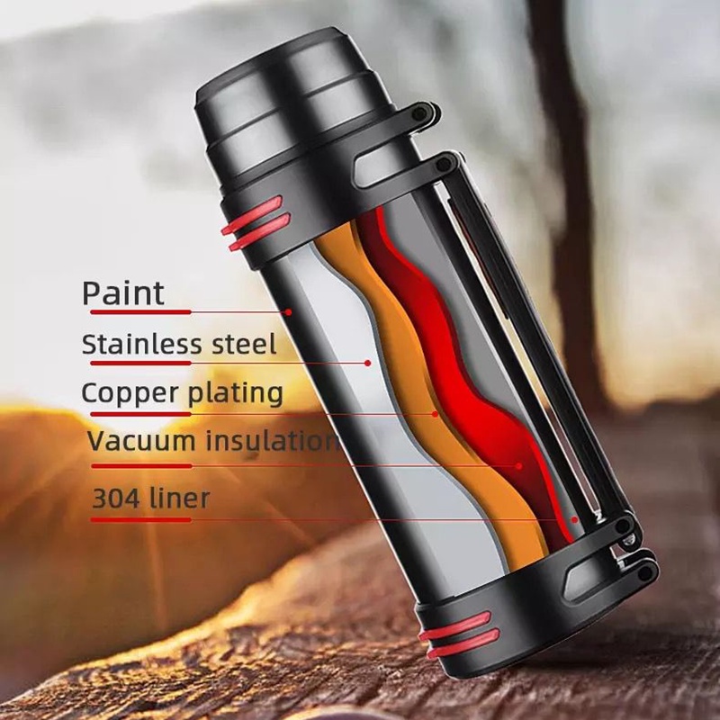 2500ml 304 Stainless Steel Insulated Flask 24 Hours Hot/Cold Lasting Camping Hiking Vacuum Flask Thermal Bottles