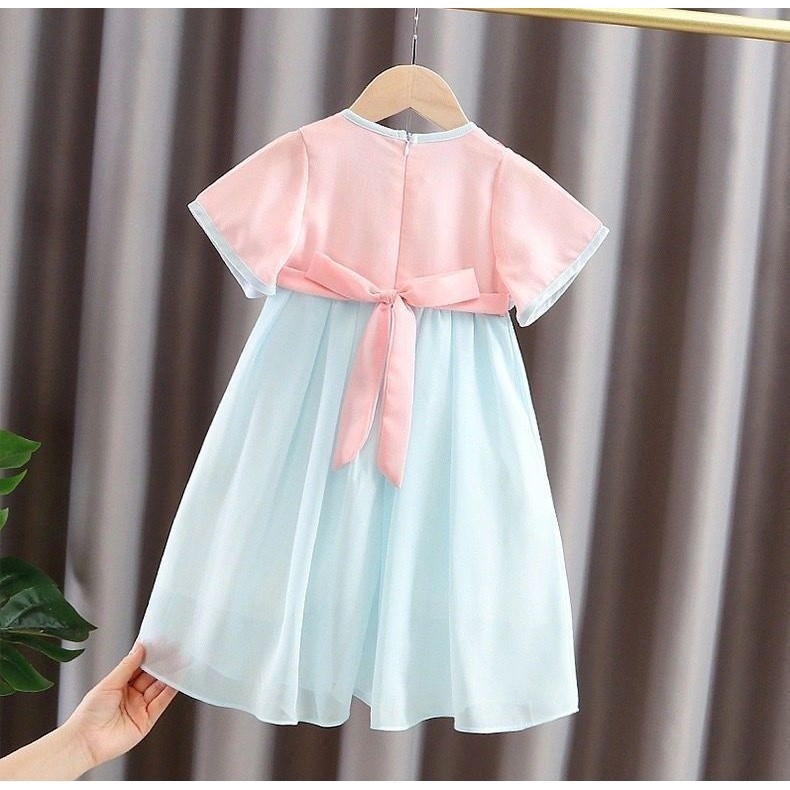 💥Ready Stock💥Girls Dress Short-Sleeved Dress with Sling Bag Children's CNY Clothes Hanfu(Free Bag & Hair Clips)