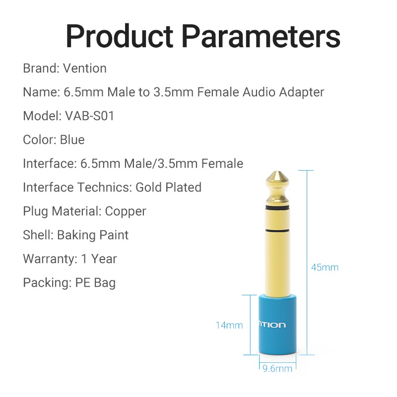Vention 6.35mm to 3.5mm Audio Adapter, 1/4 inch Male to 1/8 inch Female TRS Stereo Jack Converter for Guitar, Amplifier, Home Theater