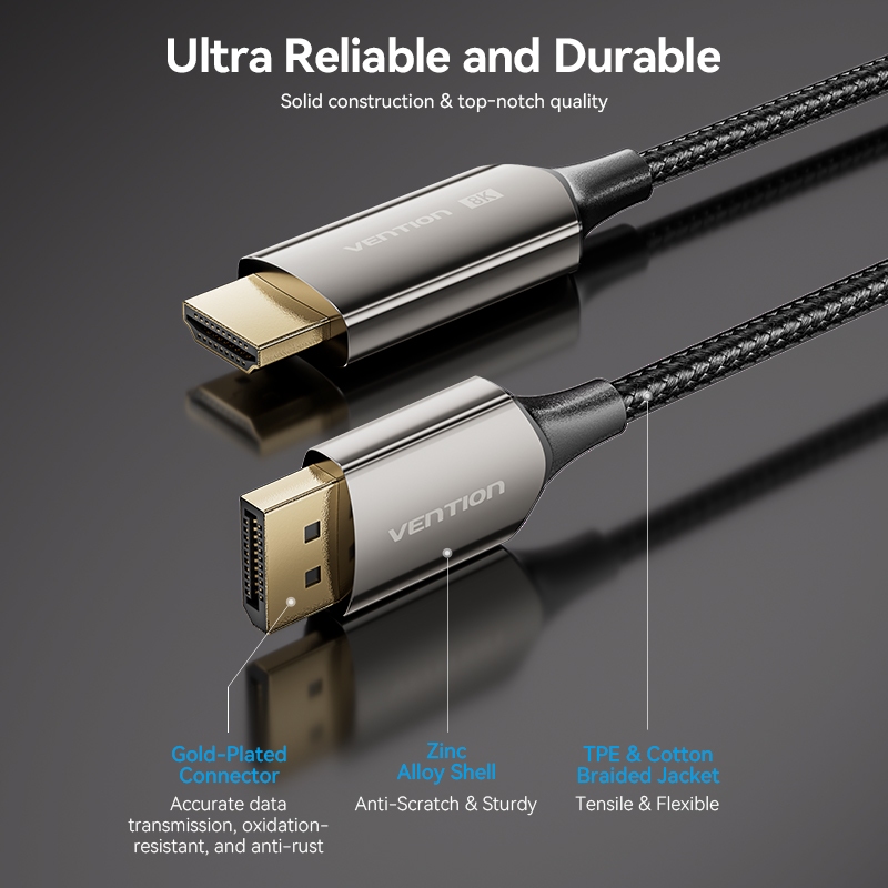 Vention DisplayPort to HDMI Cable HD 8K 60Hz HDR 144Hz DP 1.4 to HDMI 2.1 Uni-Directional Braided Cord Support HDCP 2.3 for PC Laptop Monitor Projector
