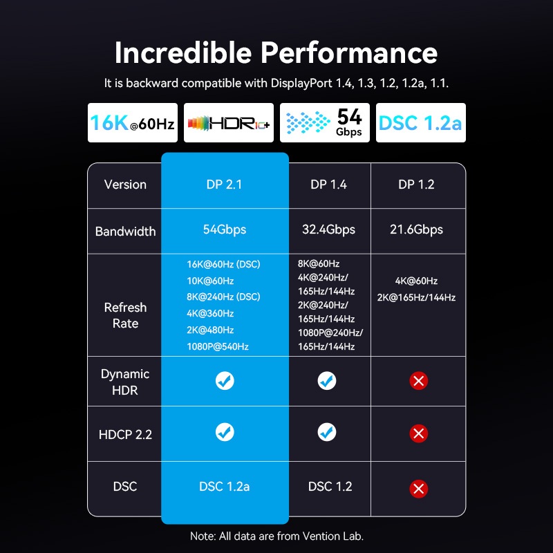 Vention 16K DisplayPort Cable 16K@60Hz 10K@60Hz 54Gbps Display Port Audio Cable Support HDR HDCP 3D SDR for Gaming Monitor TV DP 2.1