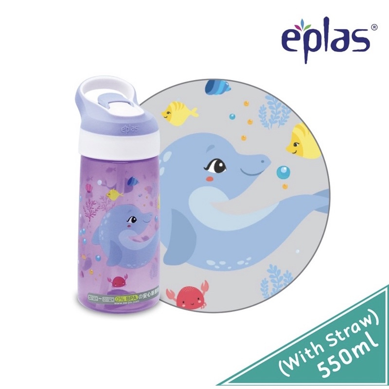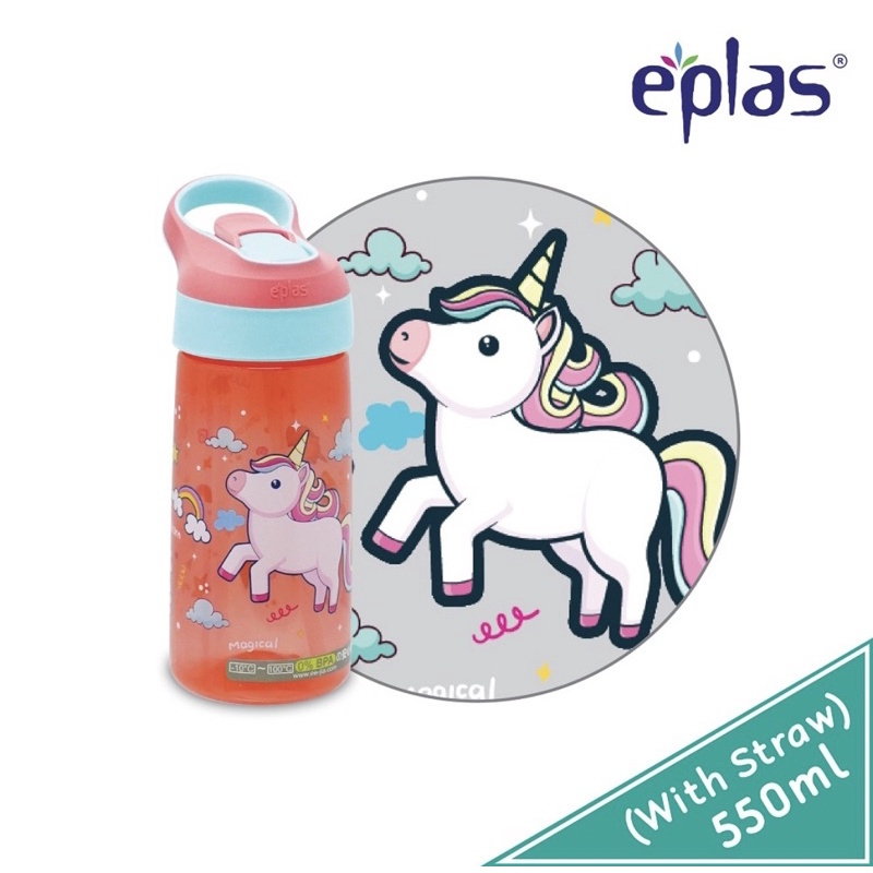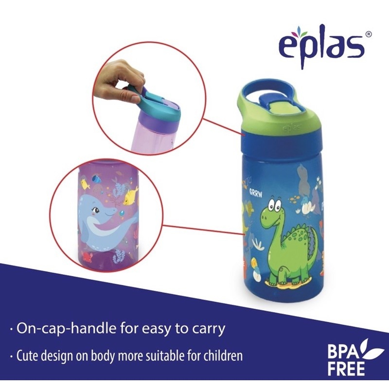 EPLAS Kids Cartoon Water Bottle With Straw and Handle, 550/850ML, BPA Free, EBSP-550/ 850/ Water Tumbler/Botol Air Kanak