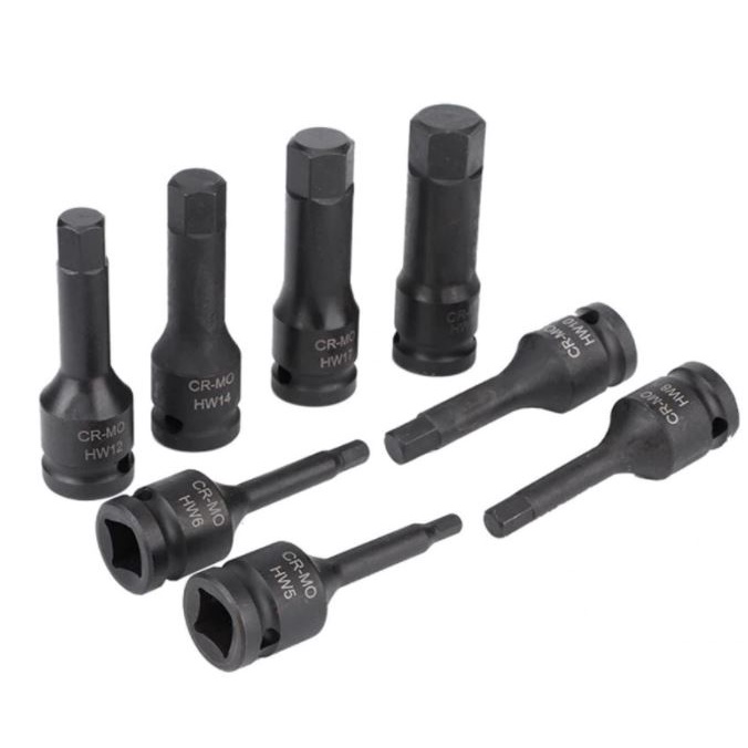 Allen Key Socket Set Hex Key Bit Extension Rod Impact Socket Hitam Adapter 10pc 1/2" 5mm 6mm 7mm 14mm19mm 12mm 10mm 8mm
