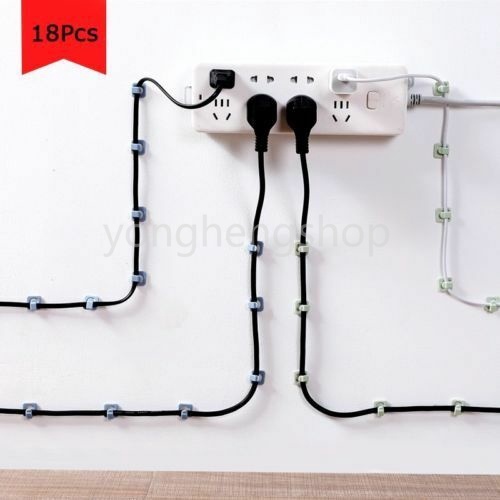 18Pcs Cable Cord Wire Line Organizer Clips Fixer Fastener Tidy Desk Wall Self-Adhesive Holder Hot Sale