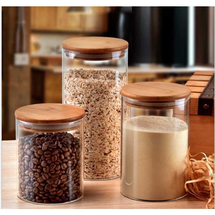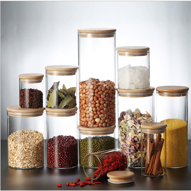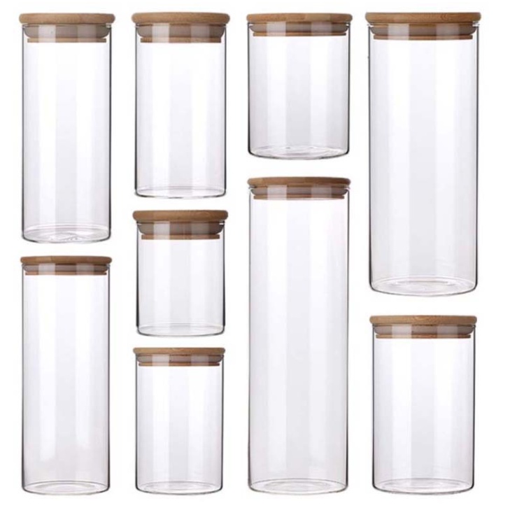 Straight Round Bamboo-Wood Lid Glass Sealed Jar 直筒圆形玻璃密封罐