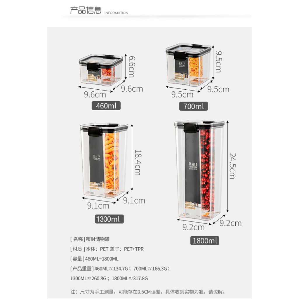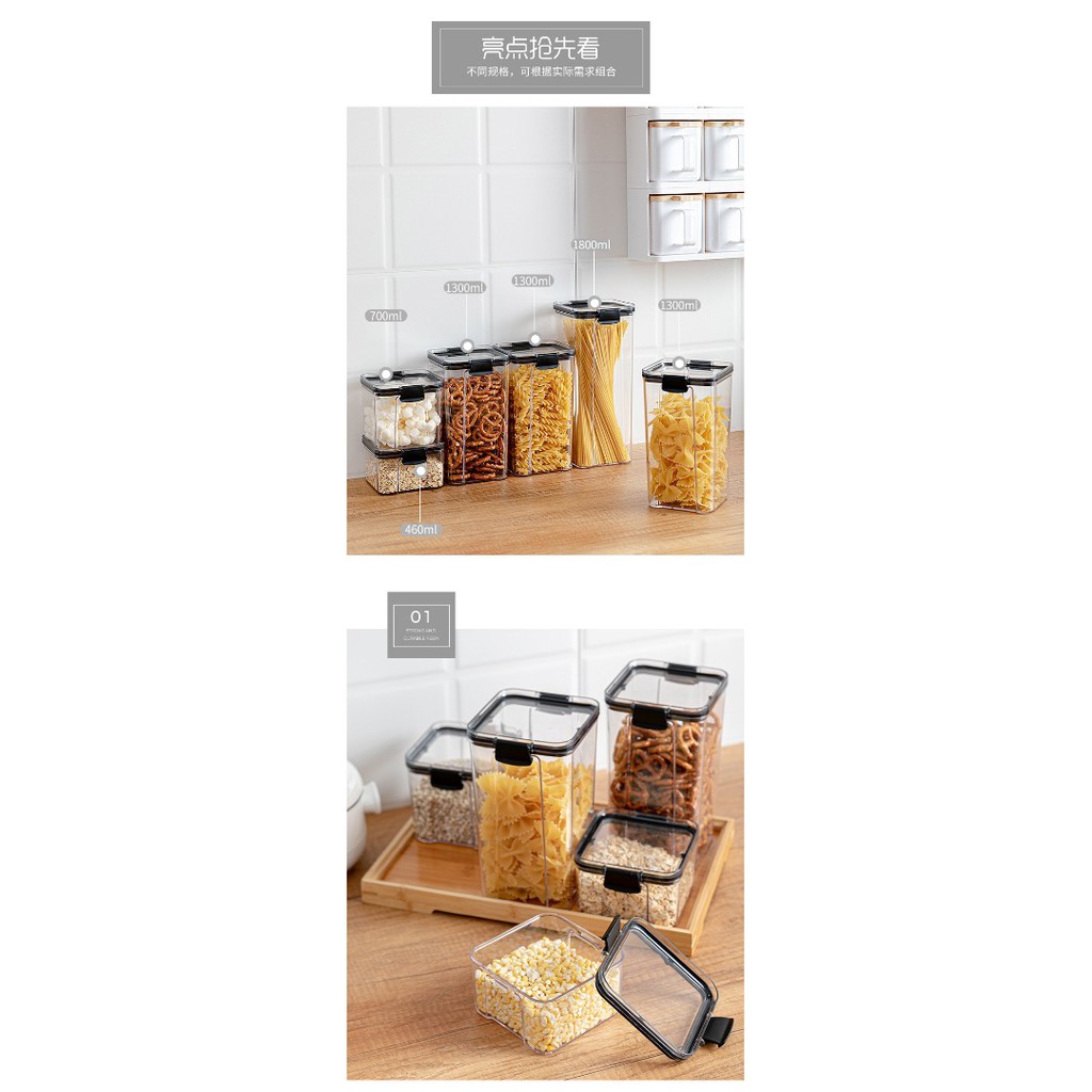 460/700/1300/1800ML Food Storage Container Plastic Kitchen Refrigerator Noodle Box Multigrain Storage Tank Transparent S