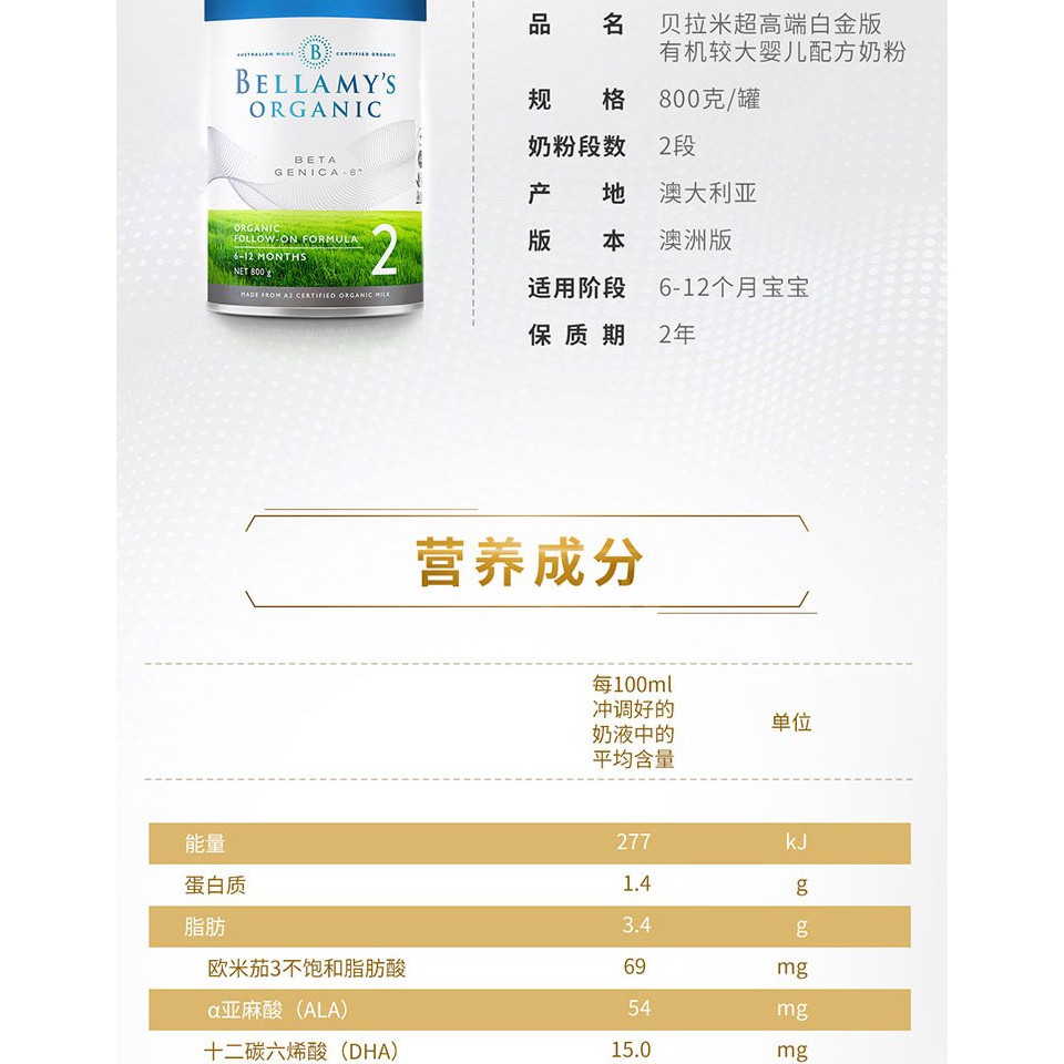 [现货+包邮 Date: 03/2027] Australia Import Bellamy's Organic Beta Genica-8" Follow-On Formula Baby Milk Step 2 800g 有机婴儿奶粉2段