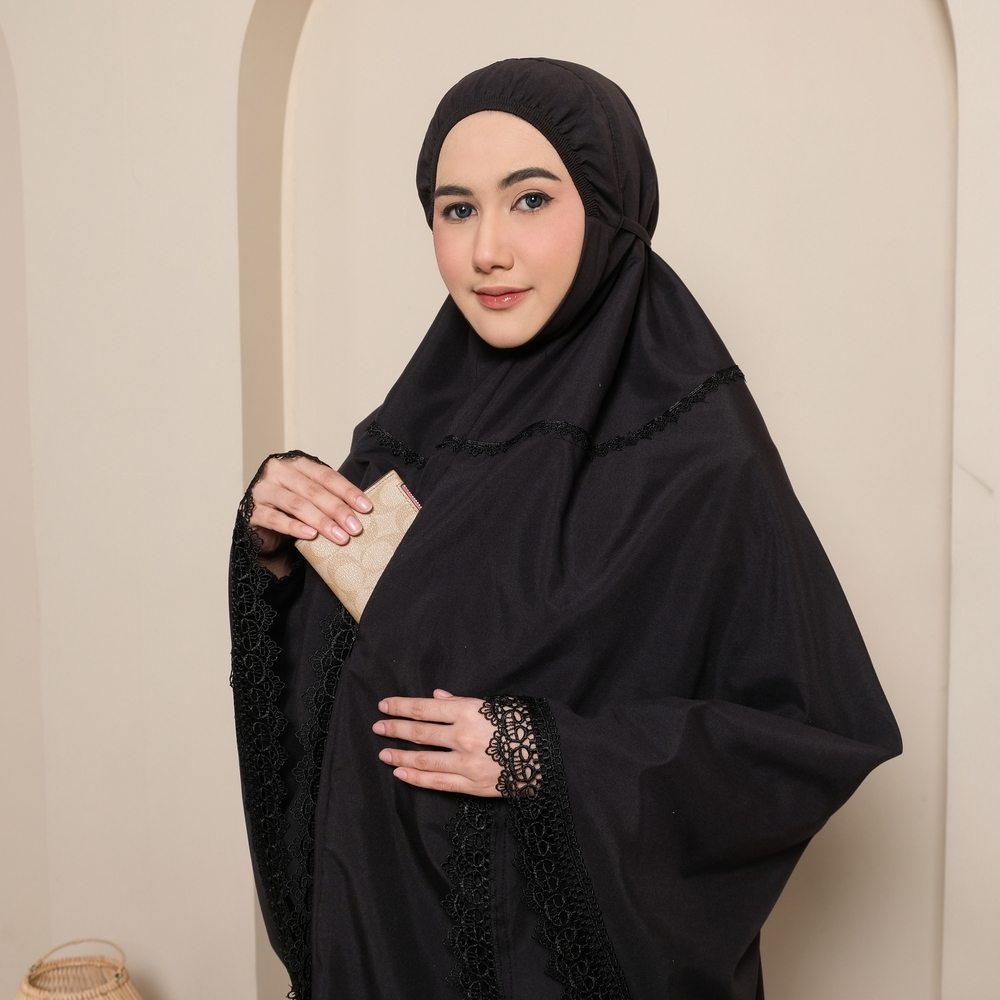 KATUN Arbifa | Bergo Naila Umrah Hajj Zipper Luxury Lace Premium Cotton Jumbo Hijab Khimar Khimar Khimar Umrah Khimar Labuh Khimar Tudung