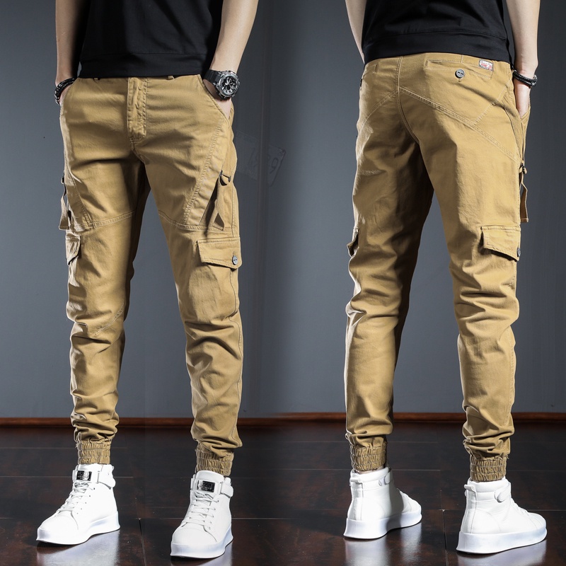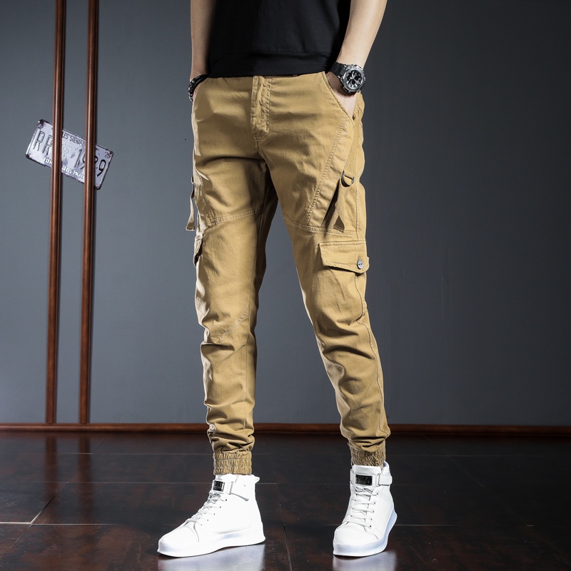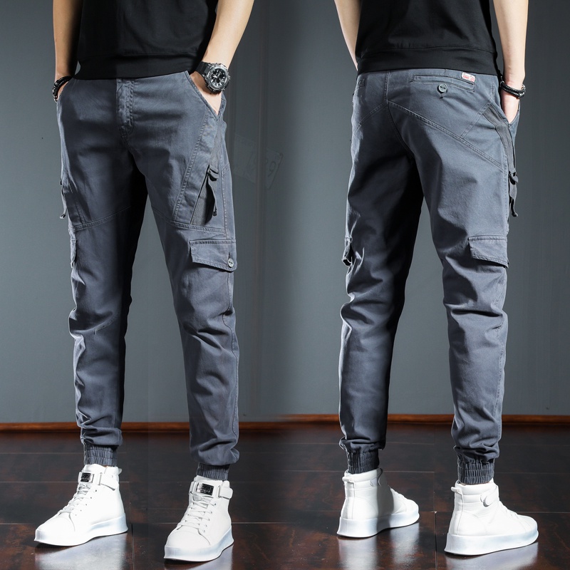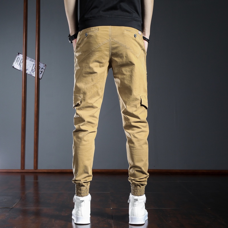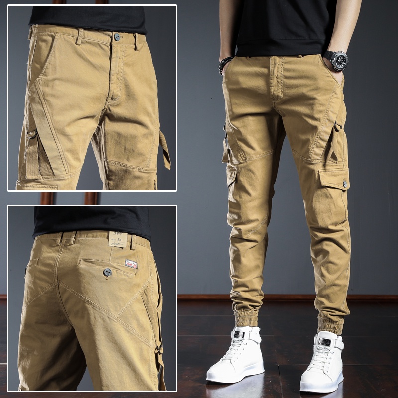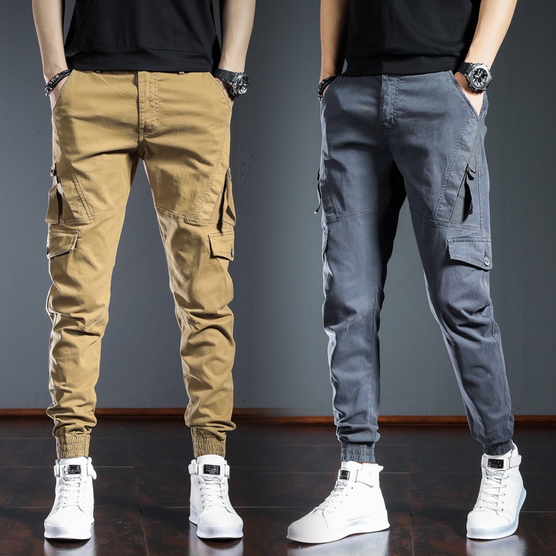 Slim Men's Cargo Joggers Pockets Cotton Pants Fasion Cool Khaki Grey Army Black