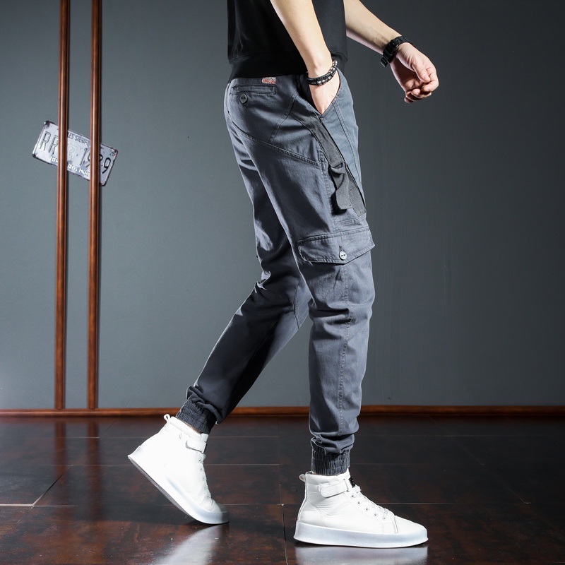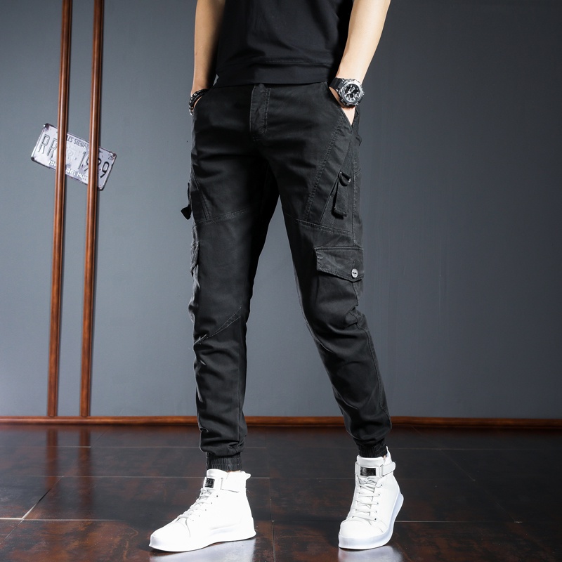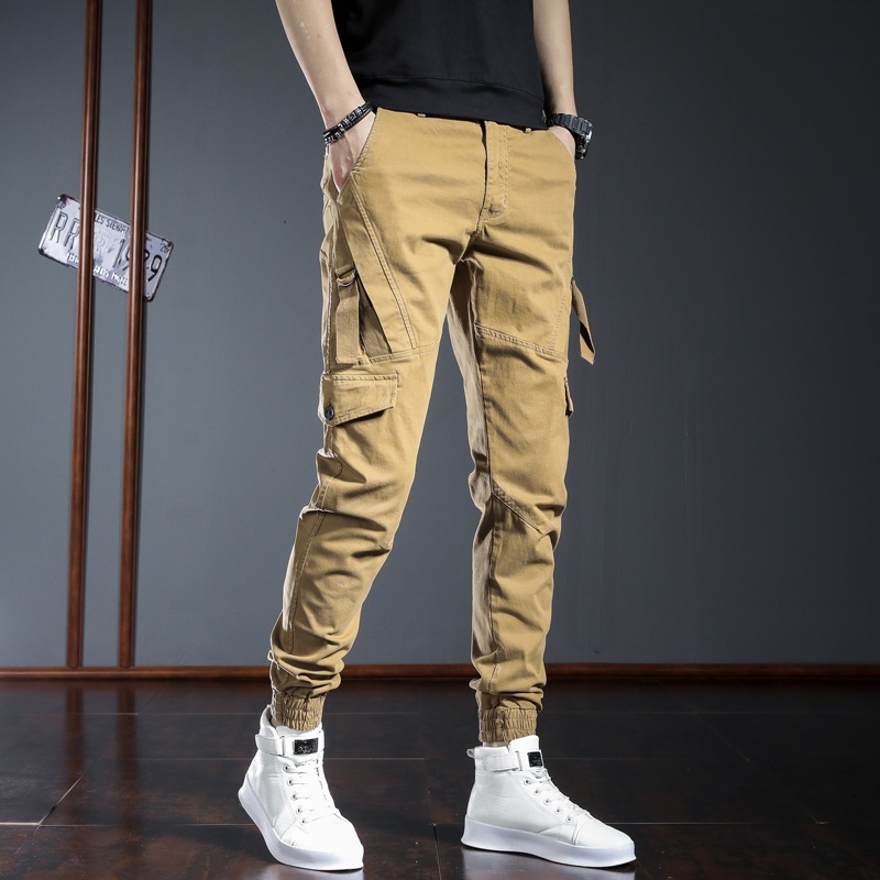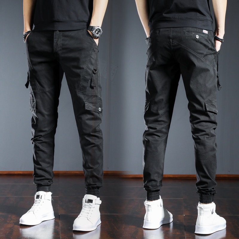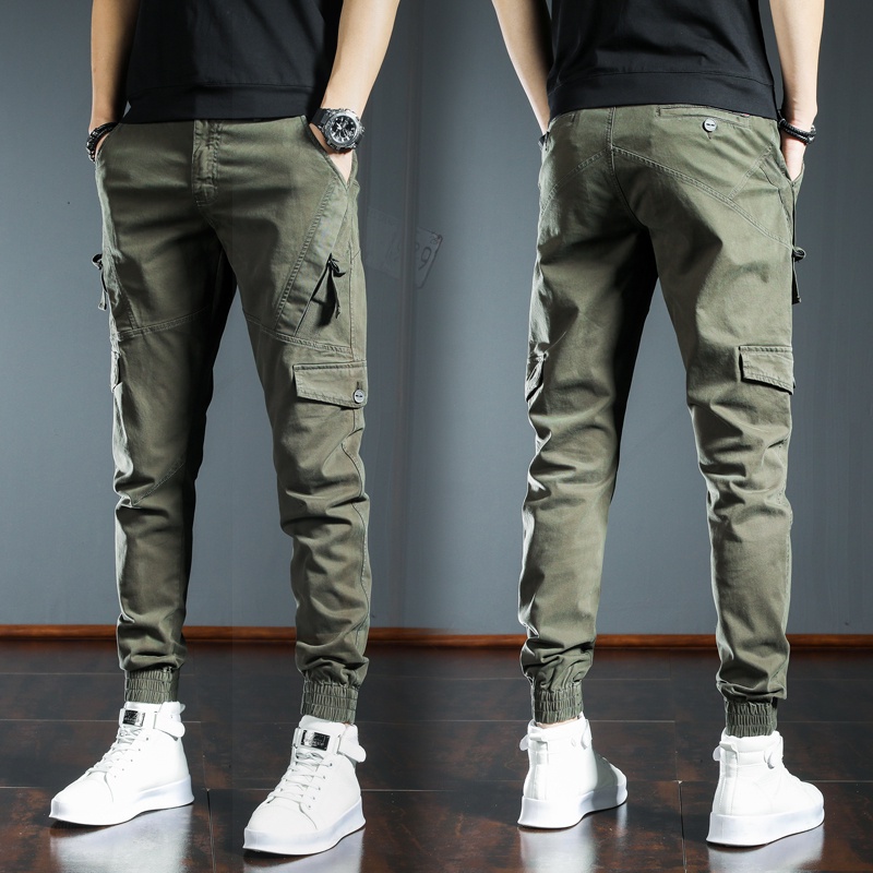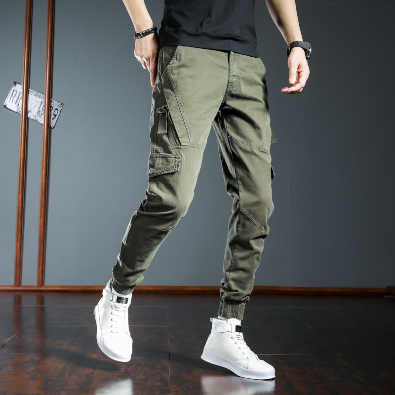 Slim Men's Cargo Joggers Pockets Cotton Pants Fasion Cool Khaki Grey Army Black