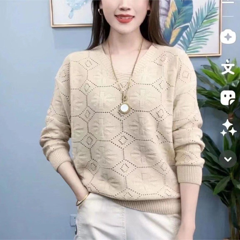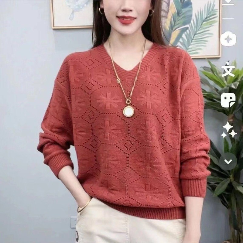 Women's Knitted Shirt 2025 Hollow Loose Fashion Long Sleeve Versatile Sweater Top