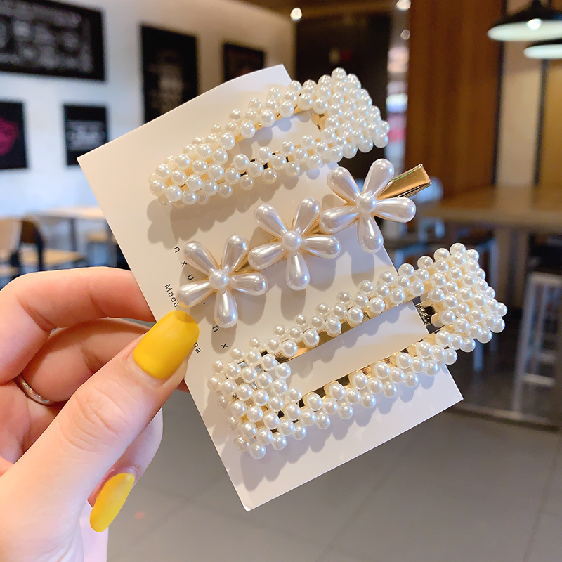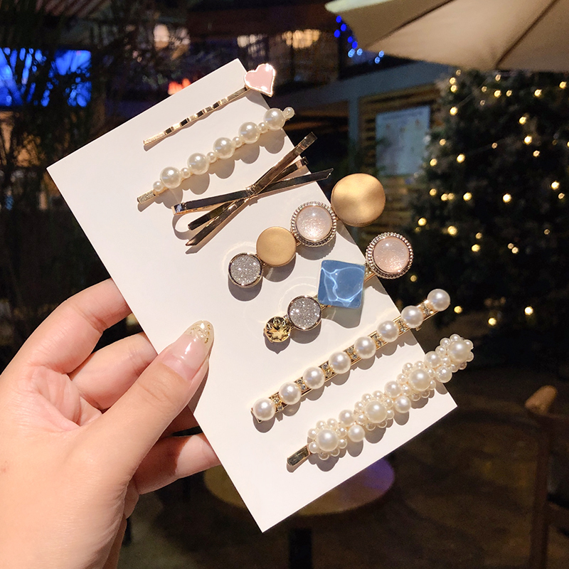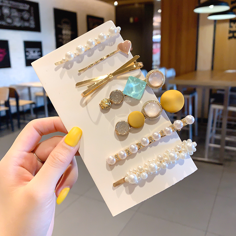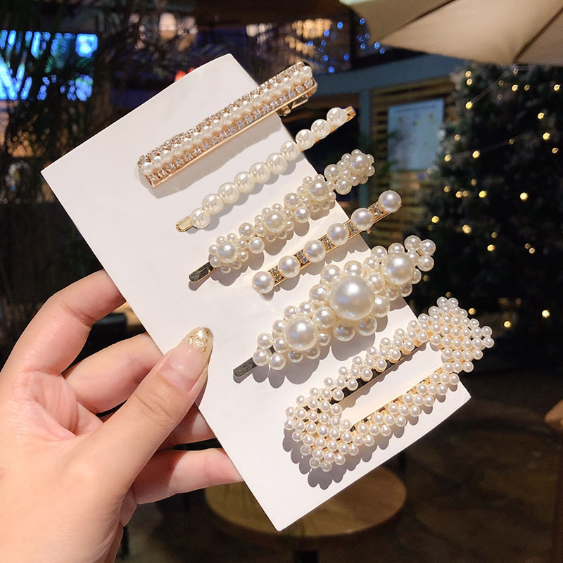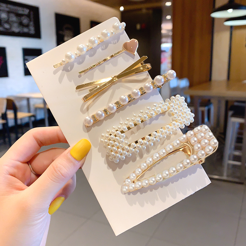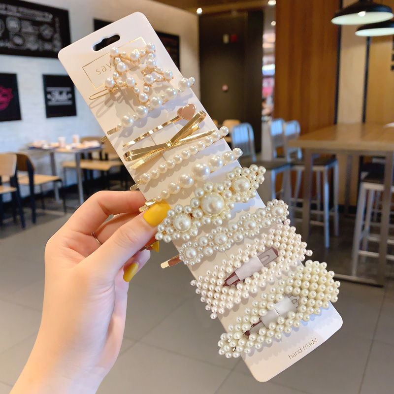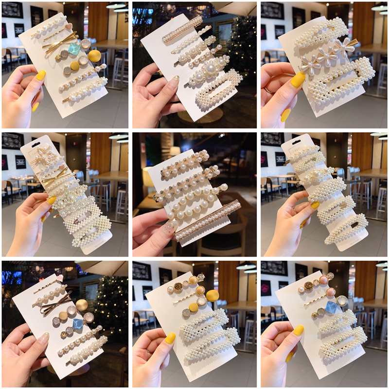 2/5/6/10 piece set Korean hair clip Fashion Pearl Hair pin Rhinestone Bangs Clip Side Clip Hair Accessories women