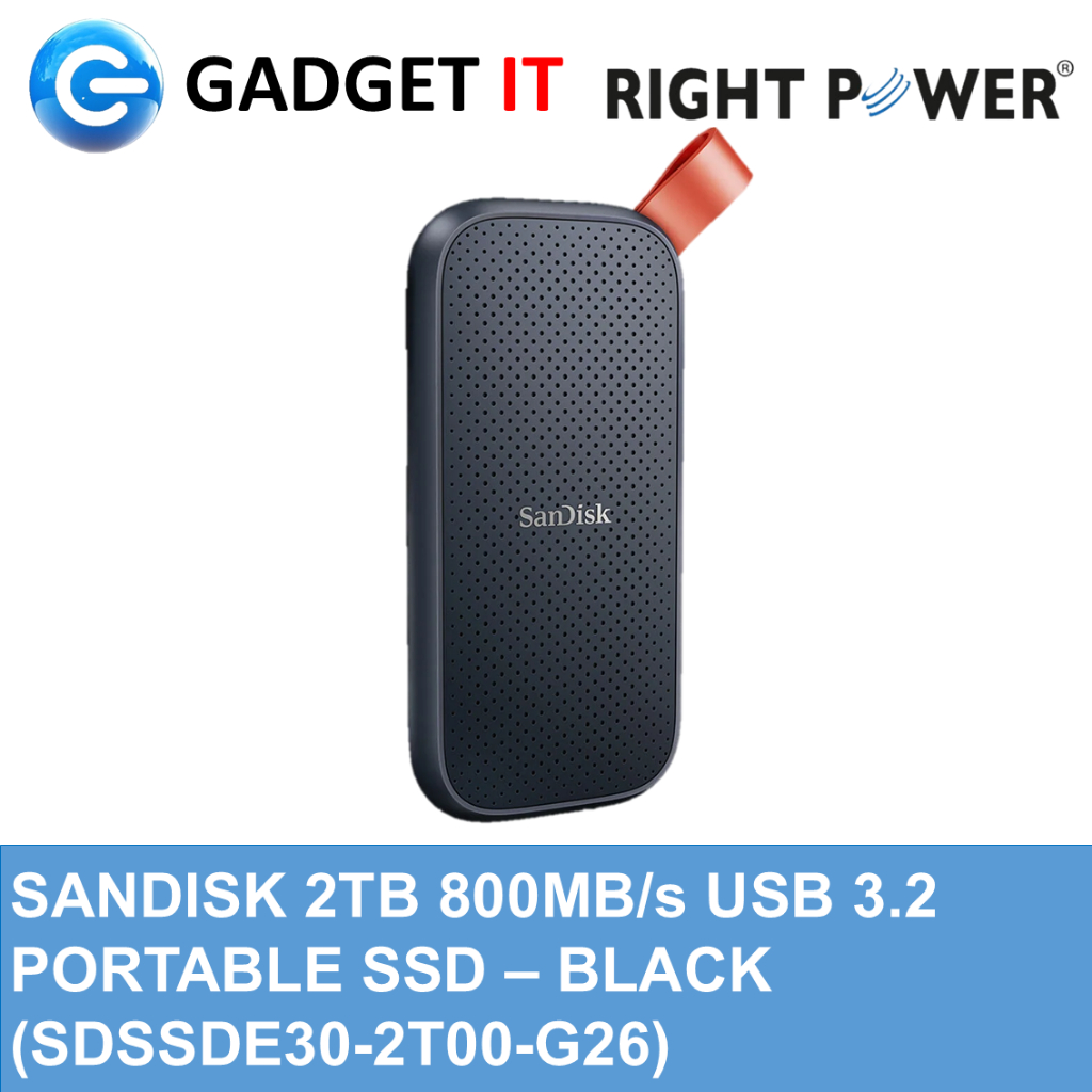 SANDISK 1TB / 2TB 800MB/s USB 3.2 PORTABLE SSD – BLACK (SDSSDE30-1T00-G26 / SDSSDE30-2T00-G26 )