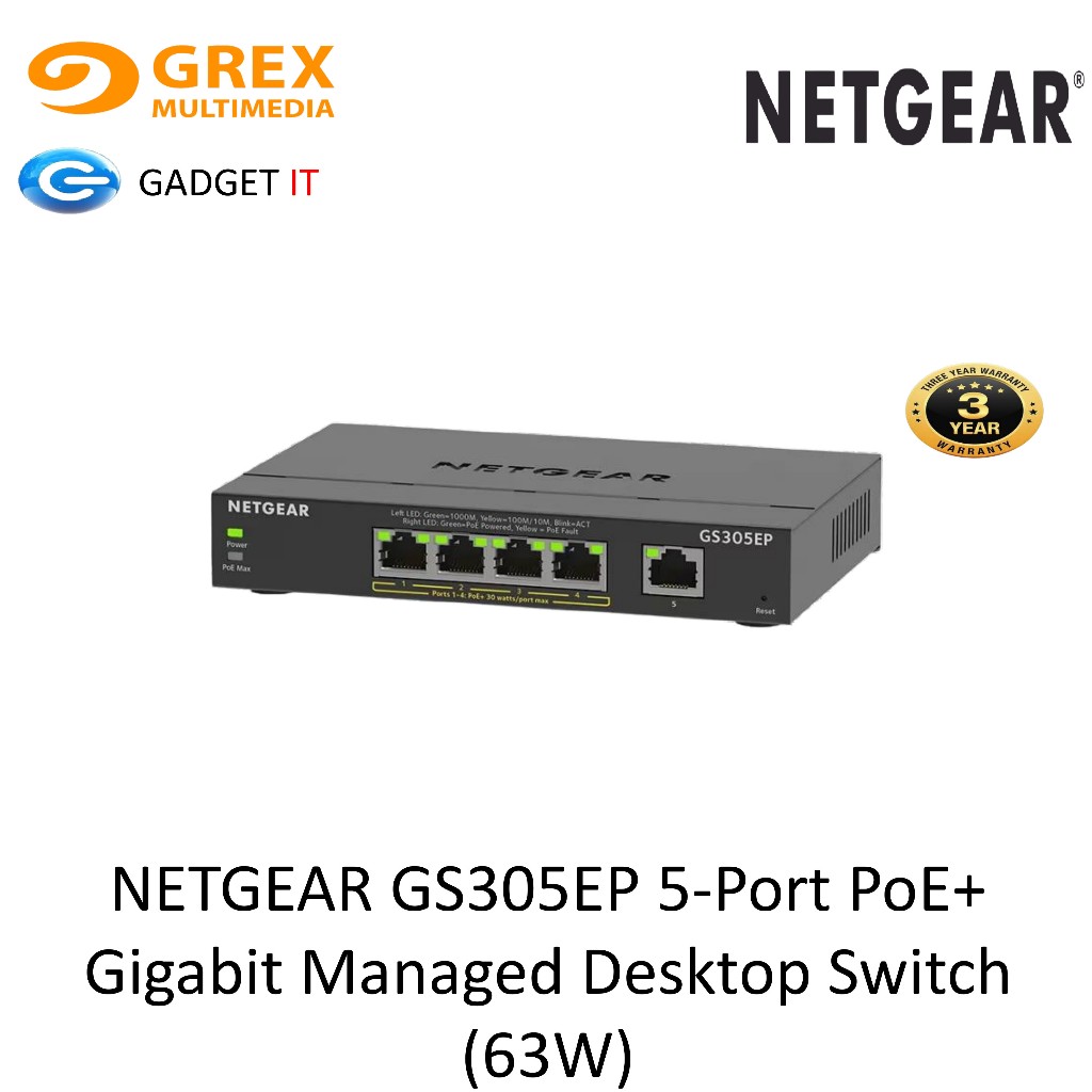 NETGEAR GS305EP-100UKS 5-Port PoE+ Gigabit Managed Desktop Switch (63W)