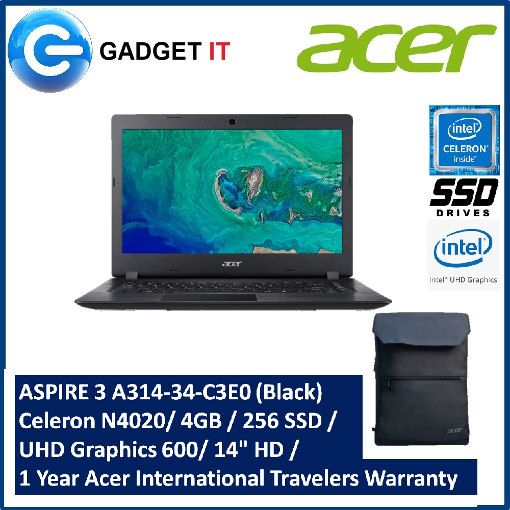 ACER ASPIRE 3 A314-32-C3E0 / A314-32-C7QH LAPTOP ( N4020,4GB,256GB SSD,14" HD,UHD GRAPHICS 600,WIN10) FREE BACKPACK