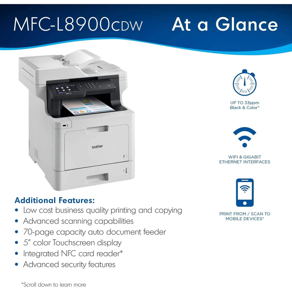 BROTHER COLOUR LASER PRINTER MFC-L8900CDW -PRINT,SCAN,COPY,FAX,WIRELESS,NFC,ADF,DUPLEX WITH 3 YEAR WARRANTY