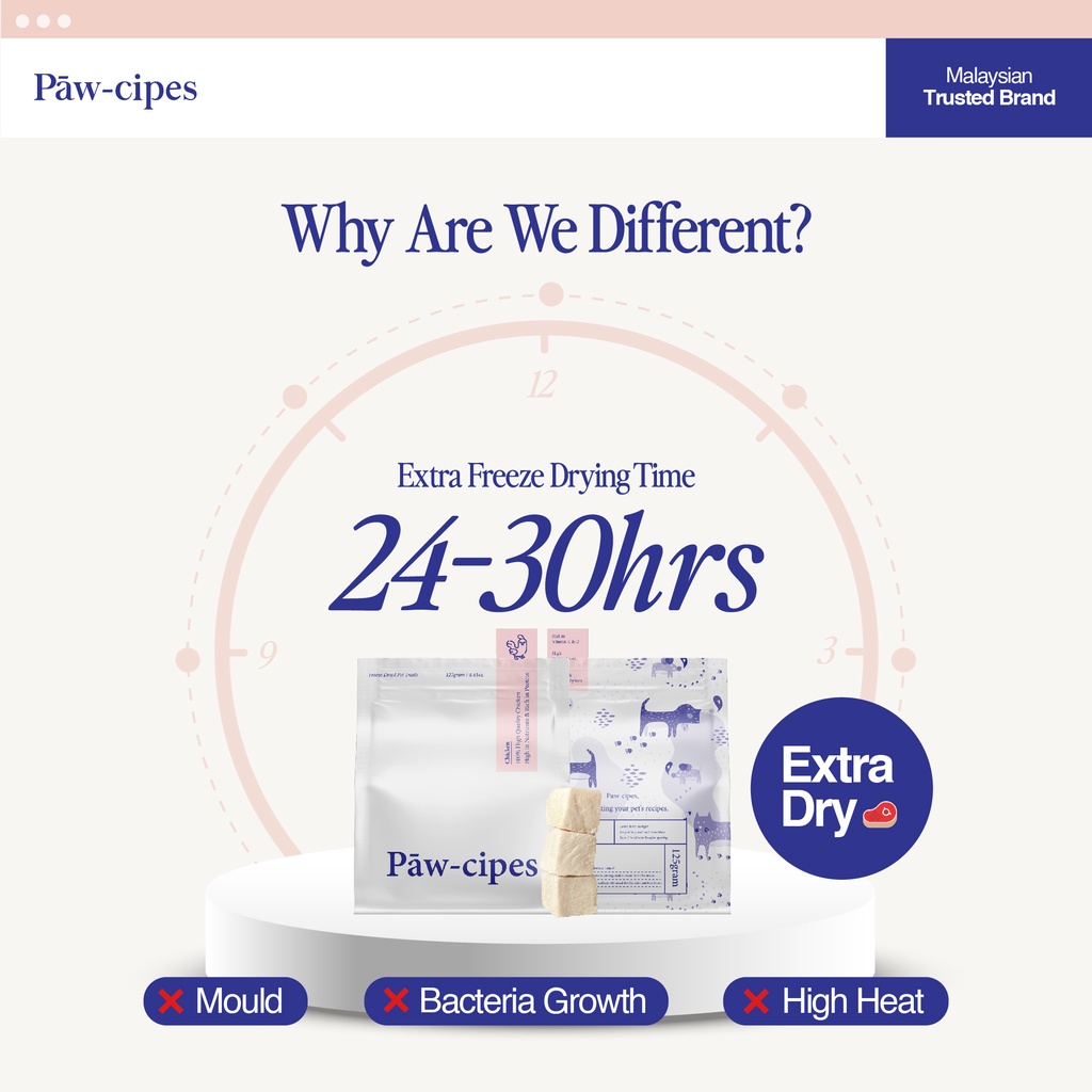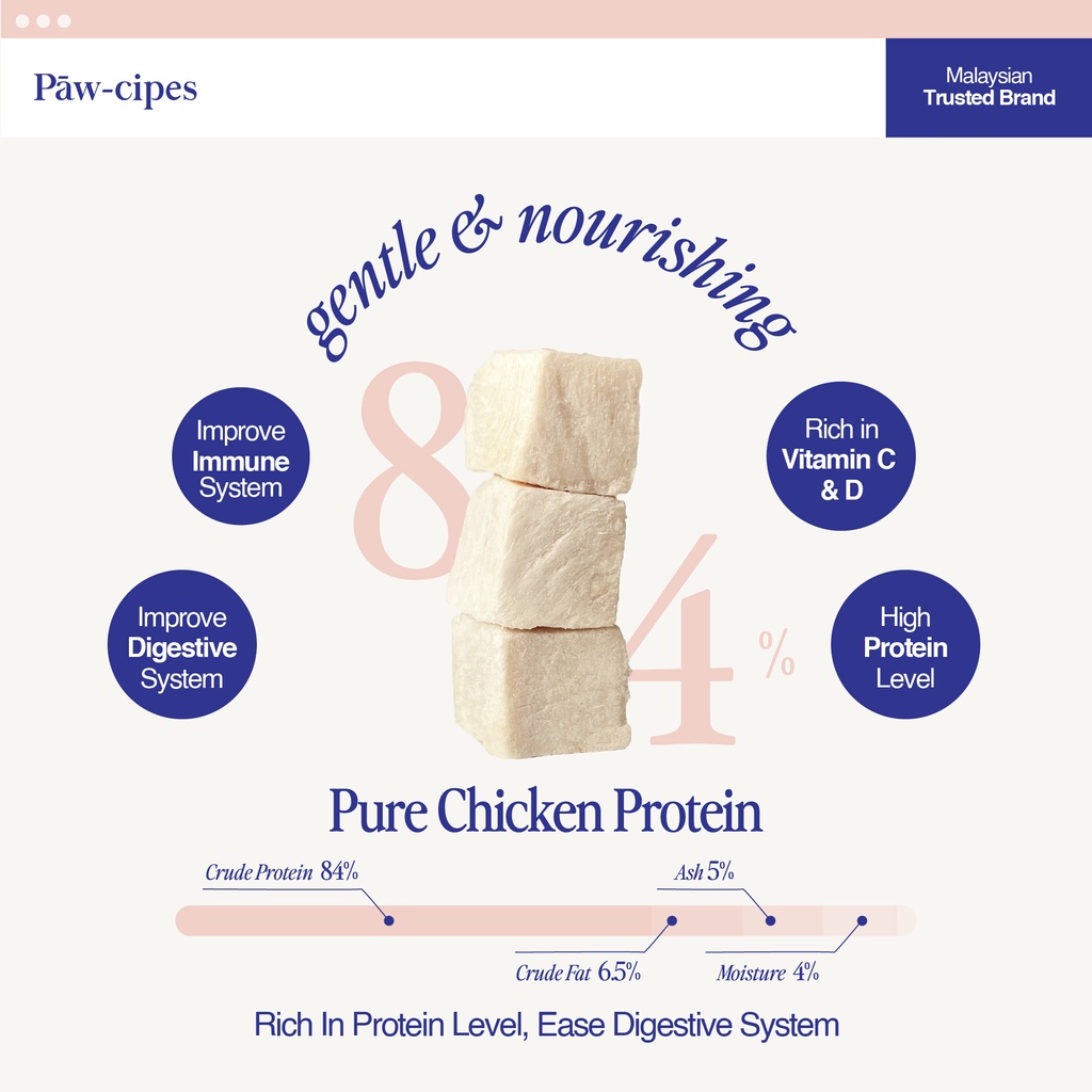 Paw-cipes (125g/375g) Freeze Dried Treats/Booster Pawcipes Premium Cat/Dog Food - Chicken Cubes