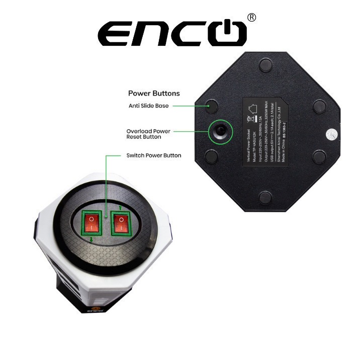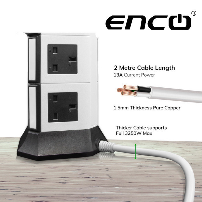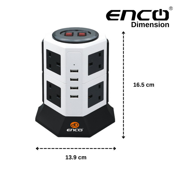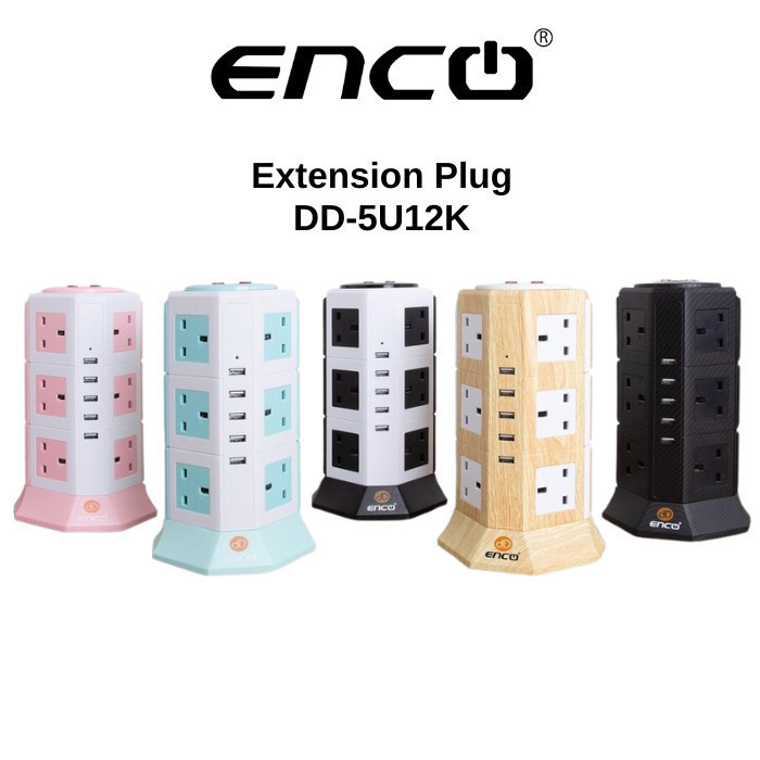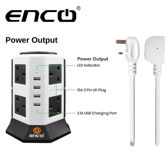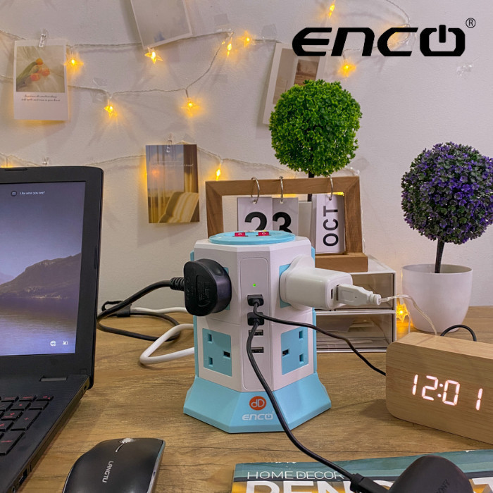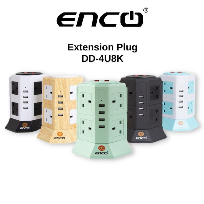 ENCO Tower Extension Plug Sambungan Power 8 Soket + 4 USB | Pudina SIRIM Fast Safety Hijau Karbon 插头 5U12K 4U8K