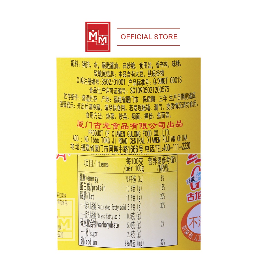Gulong Stewed Pork Chops (256g) 古龙红烧排骨