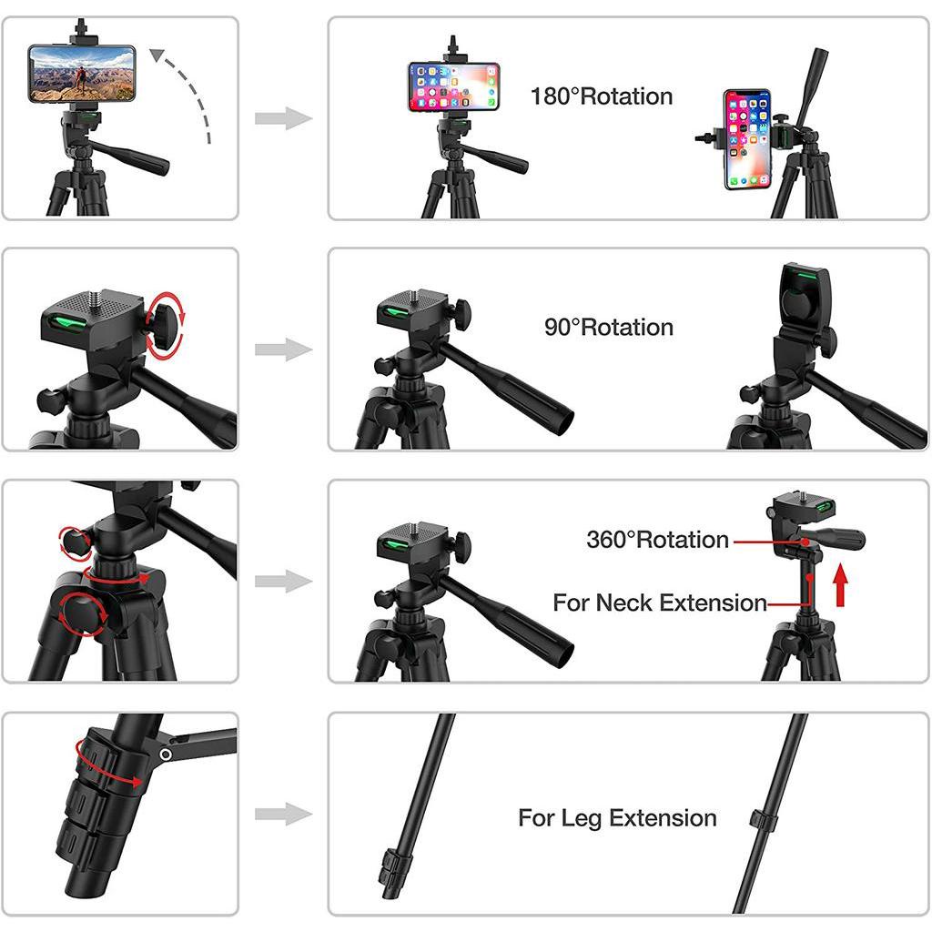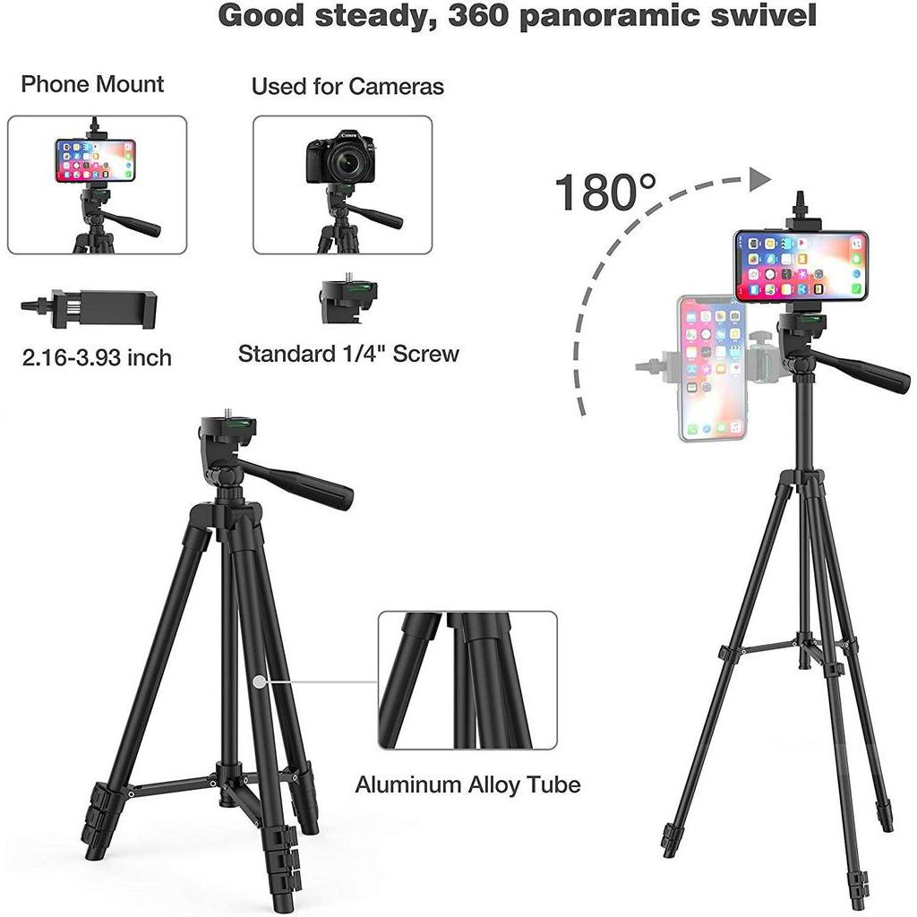 Phone Tripod, 42" Extendable Travel Lightweight Tripod Stand with Carrying Bag, Universal Tripod with Bluetooth Remote for phone