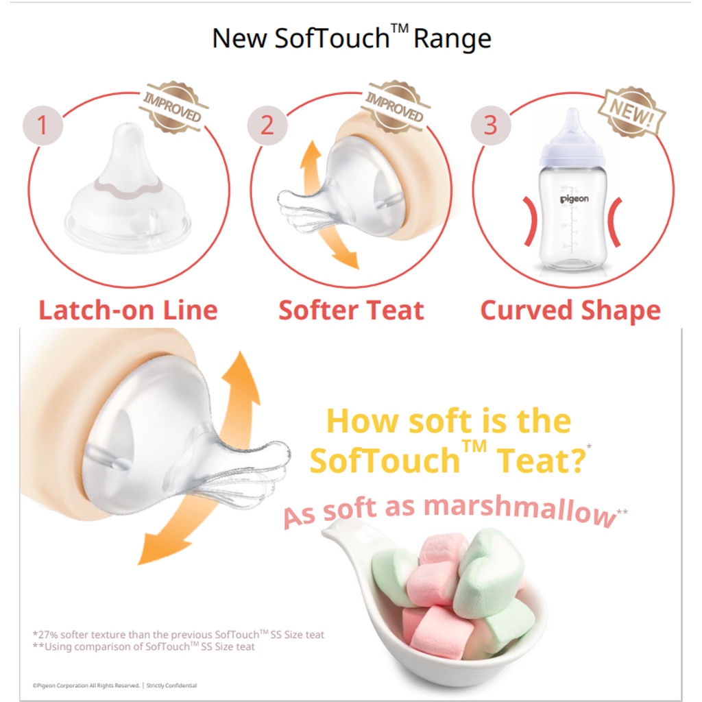 🇲🇾 Ready Stock 2PCS/PACK 100% Original Pigeon SofTouch™ Wide-Neck Teat Pigeon Teat Nipple Pigeon Baby Puting Susu