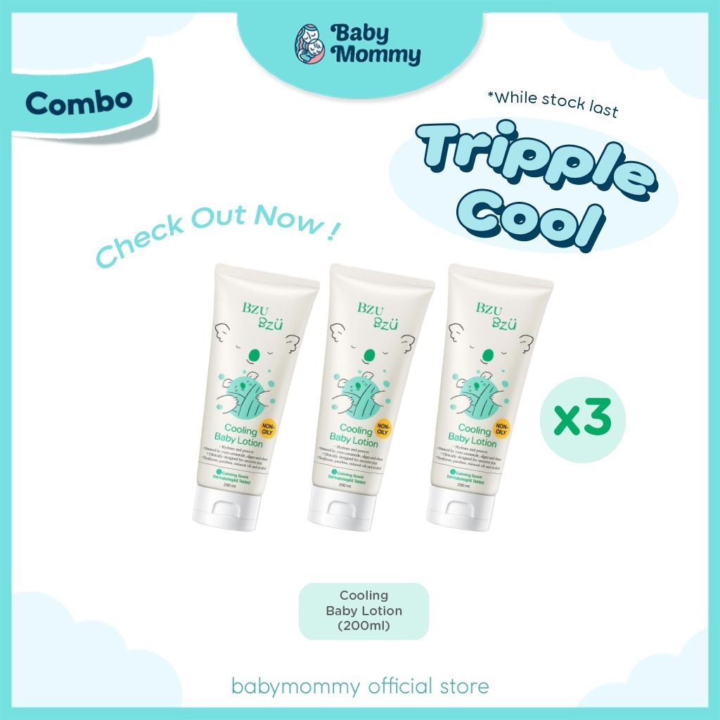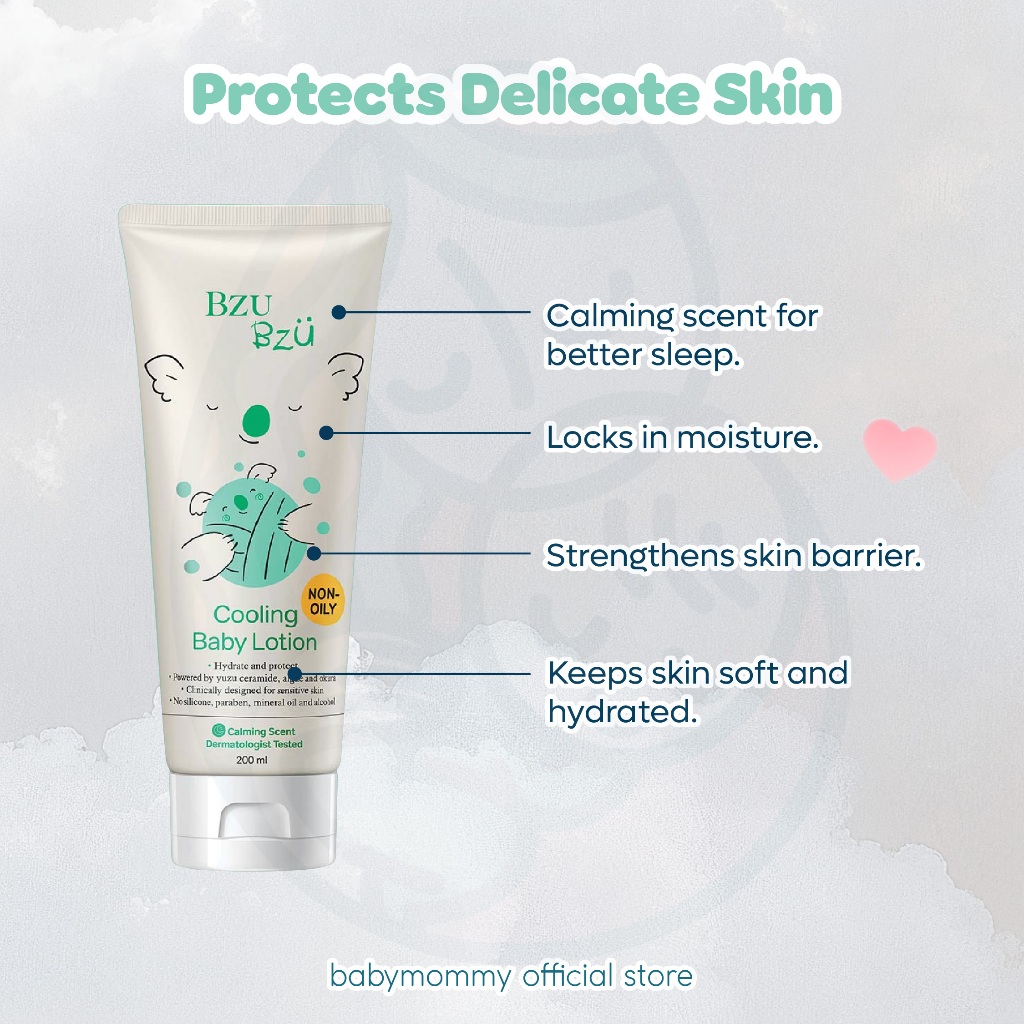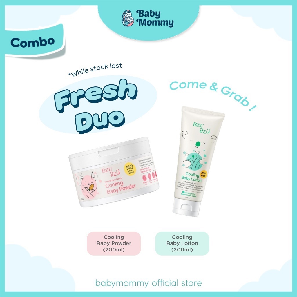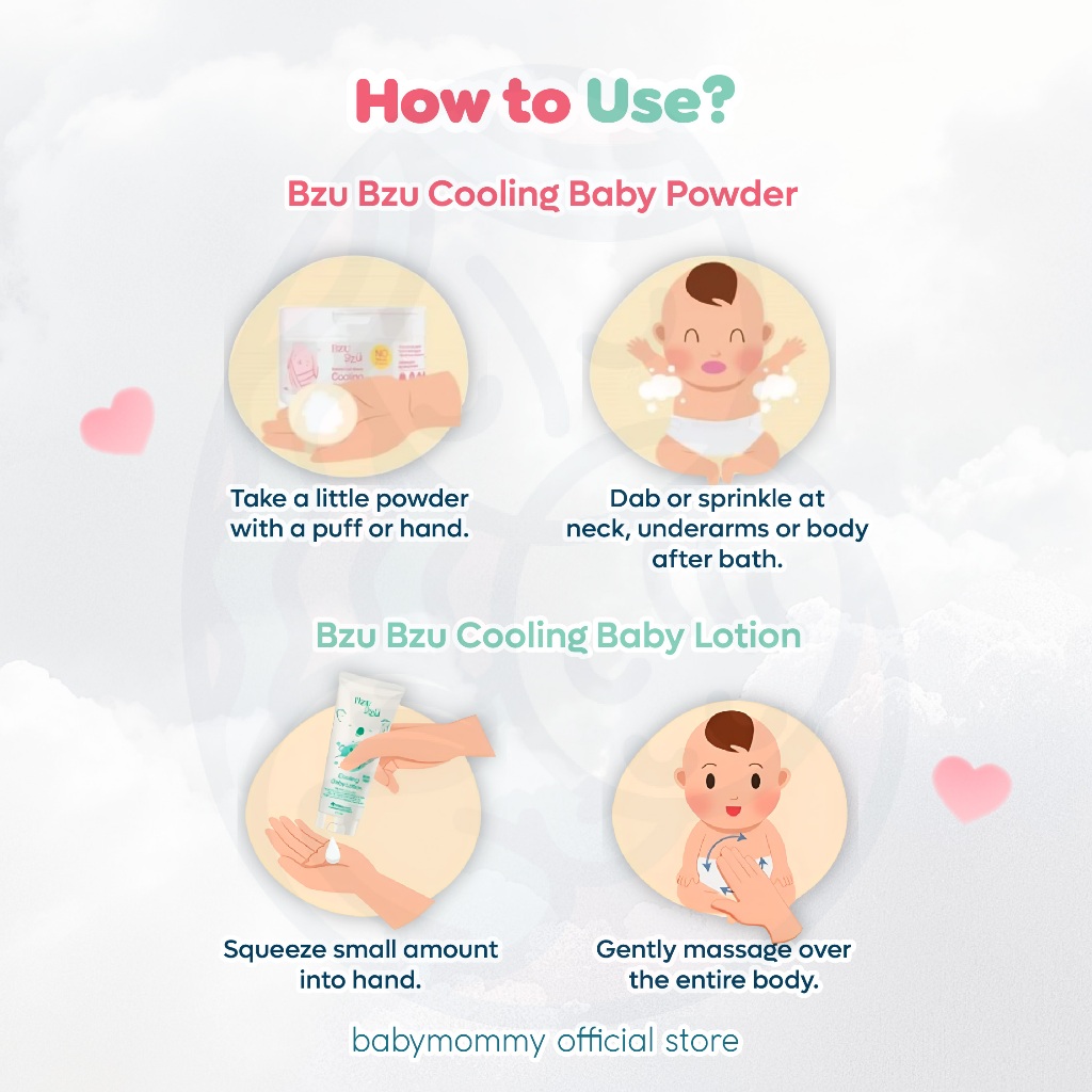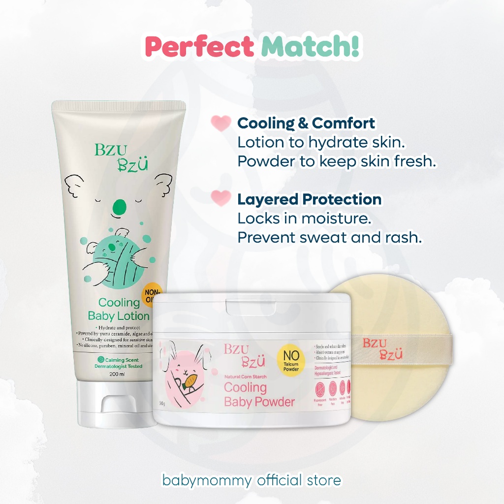Babymommy👶BZU BZU Cooling Baby Powder with Puff 140g Cooling Baby Lotion 200ml
