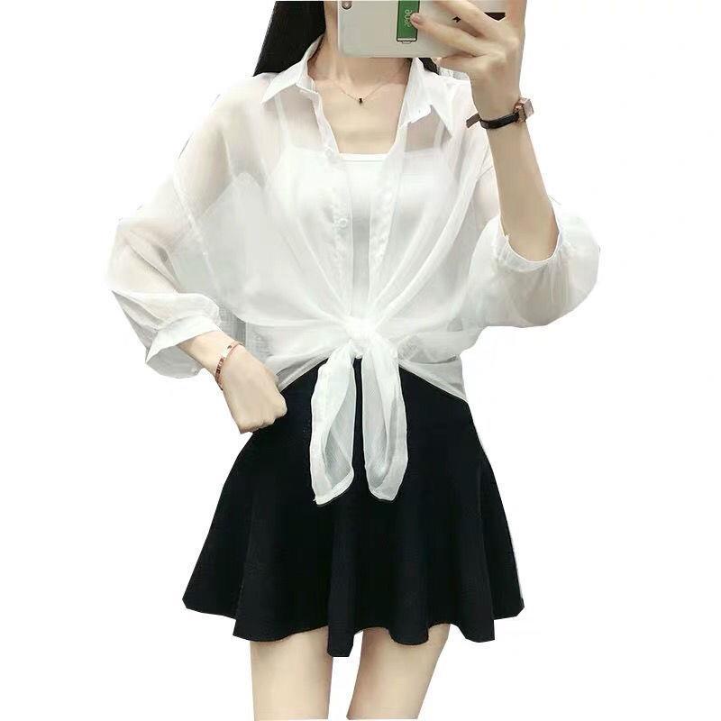 女士外套女装上衣小披肩女夏季外搭配吊带裙子雪纺上衣防晒开衫薄款衬衫短款外套坎