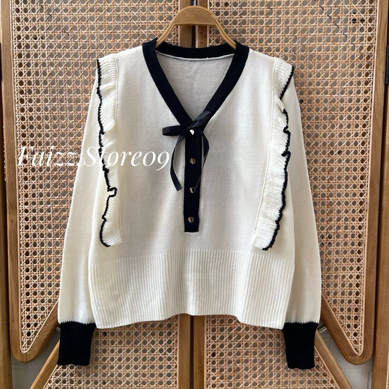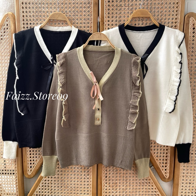 Orlanda Top Knits Korean Women's Ribbon Button Knit Sweater Top Cardigan