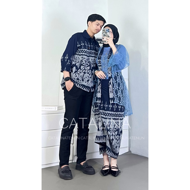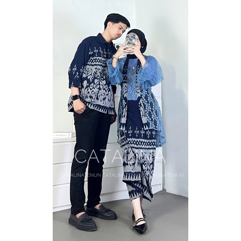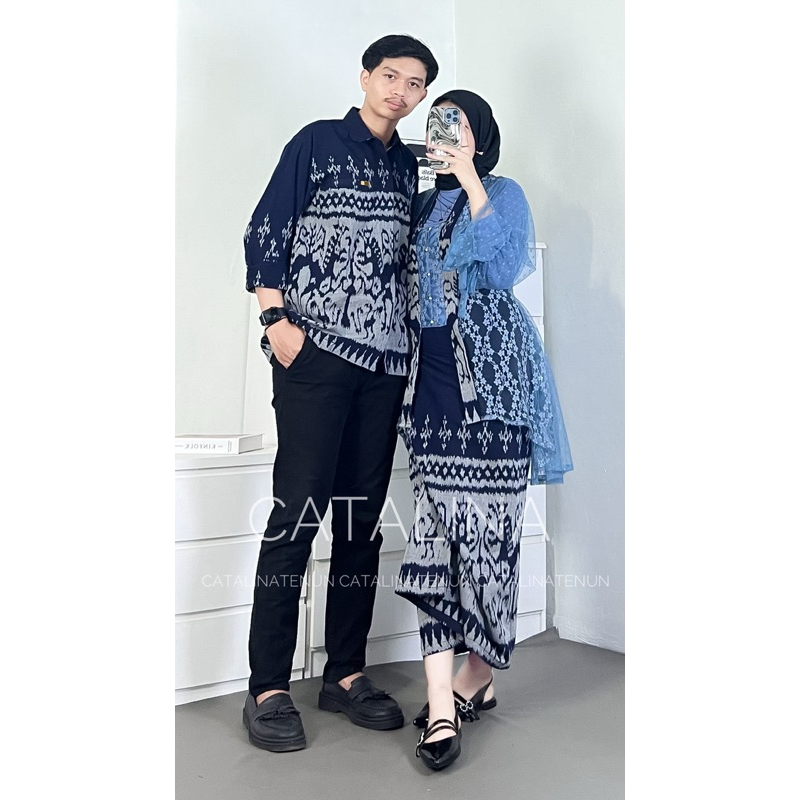 NEW COUPLE WOVEN CLOTHES SET WIDURI NAVY KEBAYA COUPLE WEDDING CLOTHES ONE SET WOMEN'S WEDDING OUTFIT