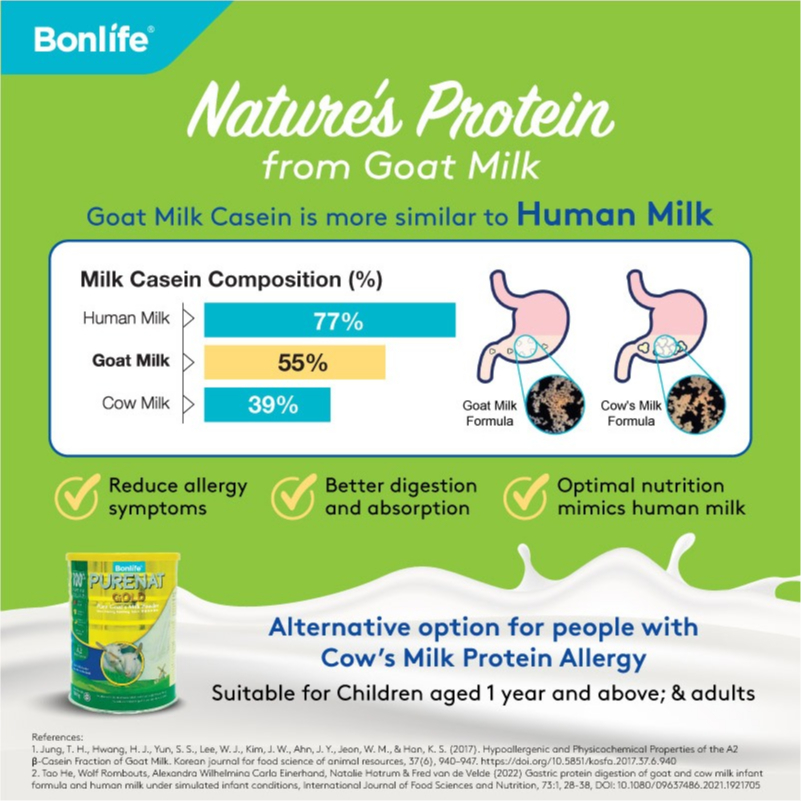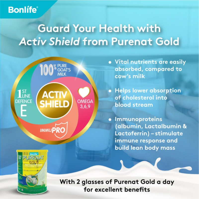 Bonlife Purenat Gold Goat's Milk Powder Boost Immune Support Gut Health Omega 369 Reduce Heart Disease