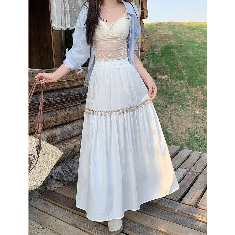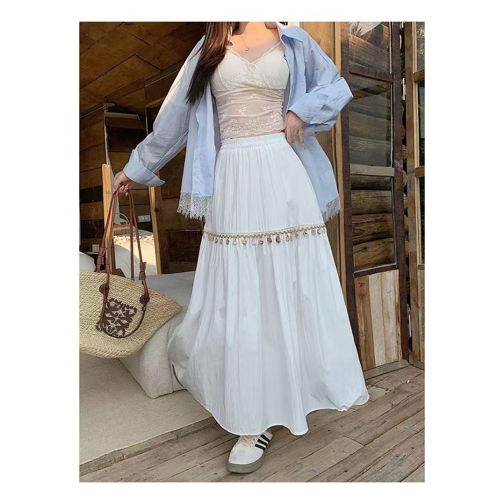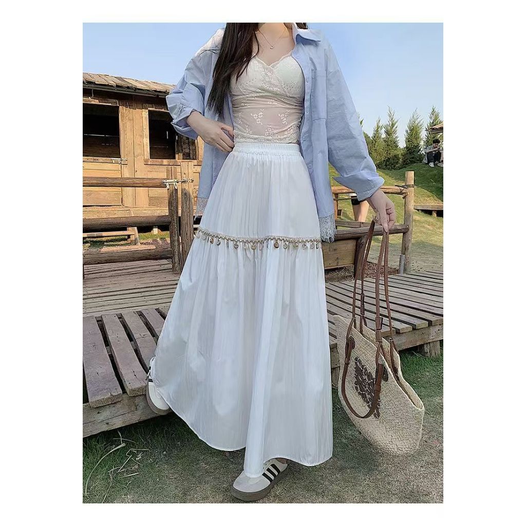 Trendy Vintage Long Skirt for Woman Maxi Skirt High Waist A-Line Skirt