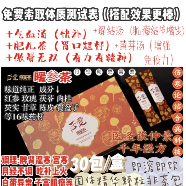 非茶包即溶颗粒特好吸收/冲水即饮✓新包装>后爱中医方|暖参茶(4g*30袋温水冲服)Dehumidifying Nuanwei Soup去祛湿暖宫胃暖身汤排湿寒改善痛经Dysmenorrhea失眠Sleepy子宫肌瘤tumor茯苓肉桂枣姜