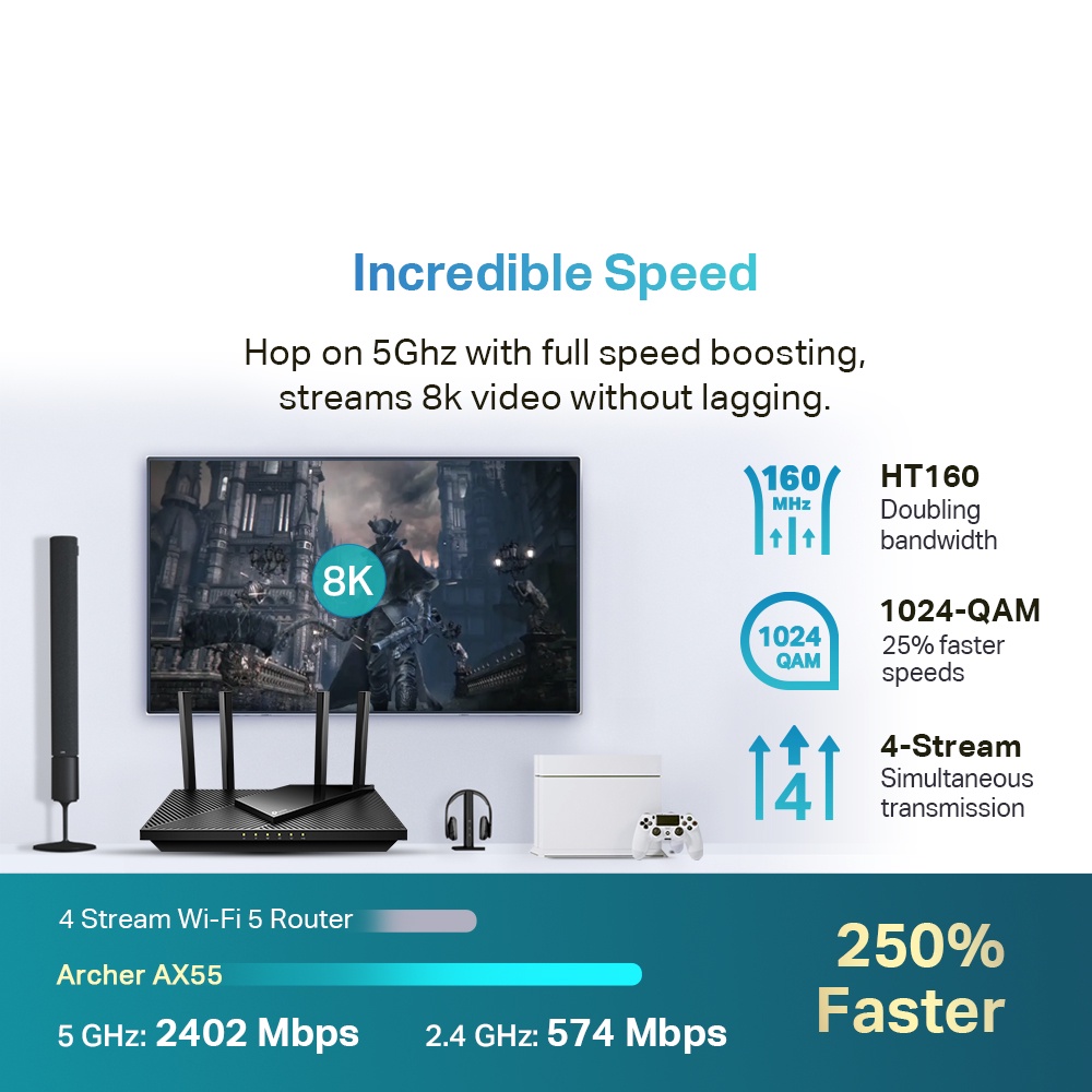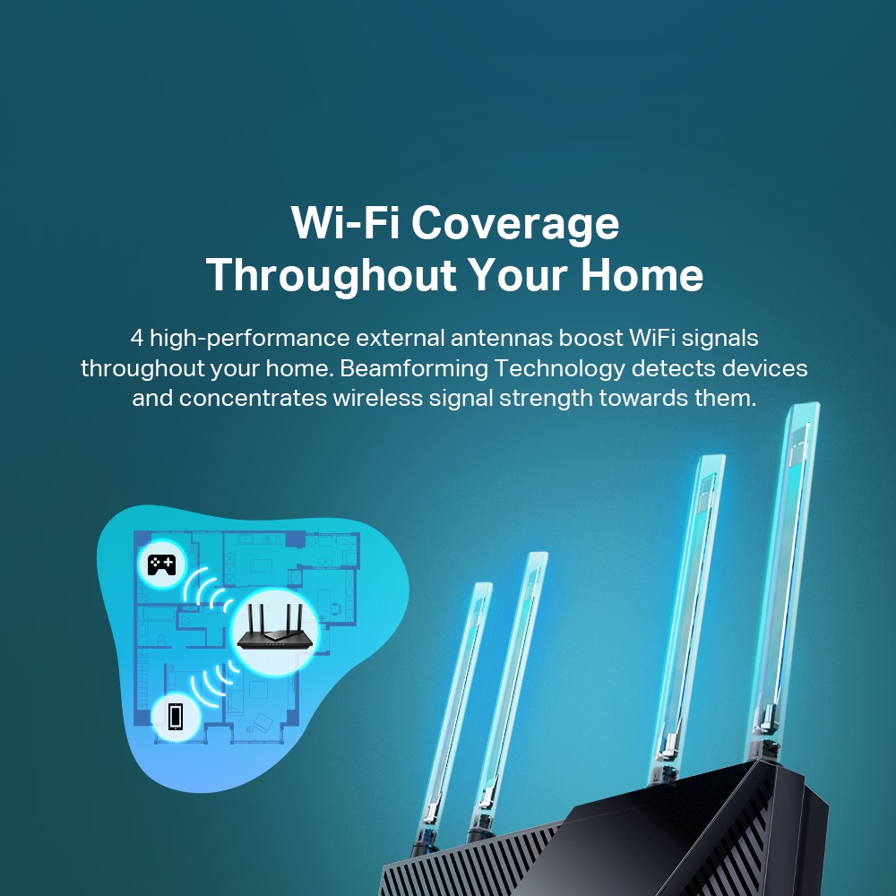 TP-Link AX3000 Dual Band Gigabit High Power Wireless AX Wifi 6 Mesh Router With HomeShield Archer AX55