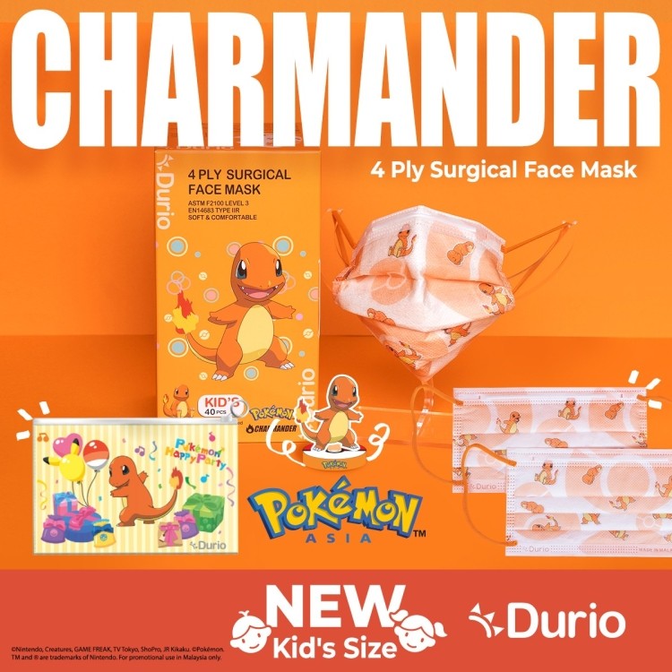 Durio 546K Kids Pokémon Series (Pikachu/ Squirtle/ Charmander/ Bulbasaur) Mask 40s | Maximum Comfort