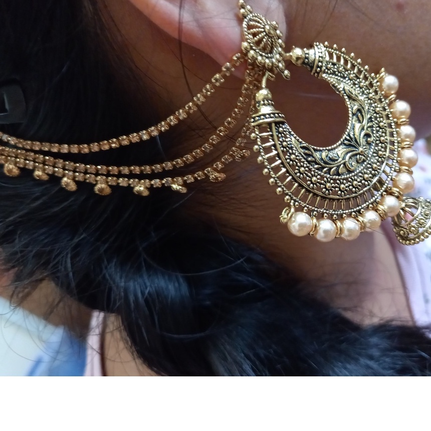 Gold Plated Earrings Chain Kan Chain Bahubali Mattal Hair Chains
