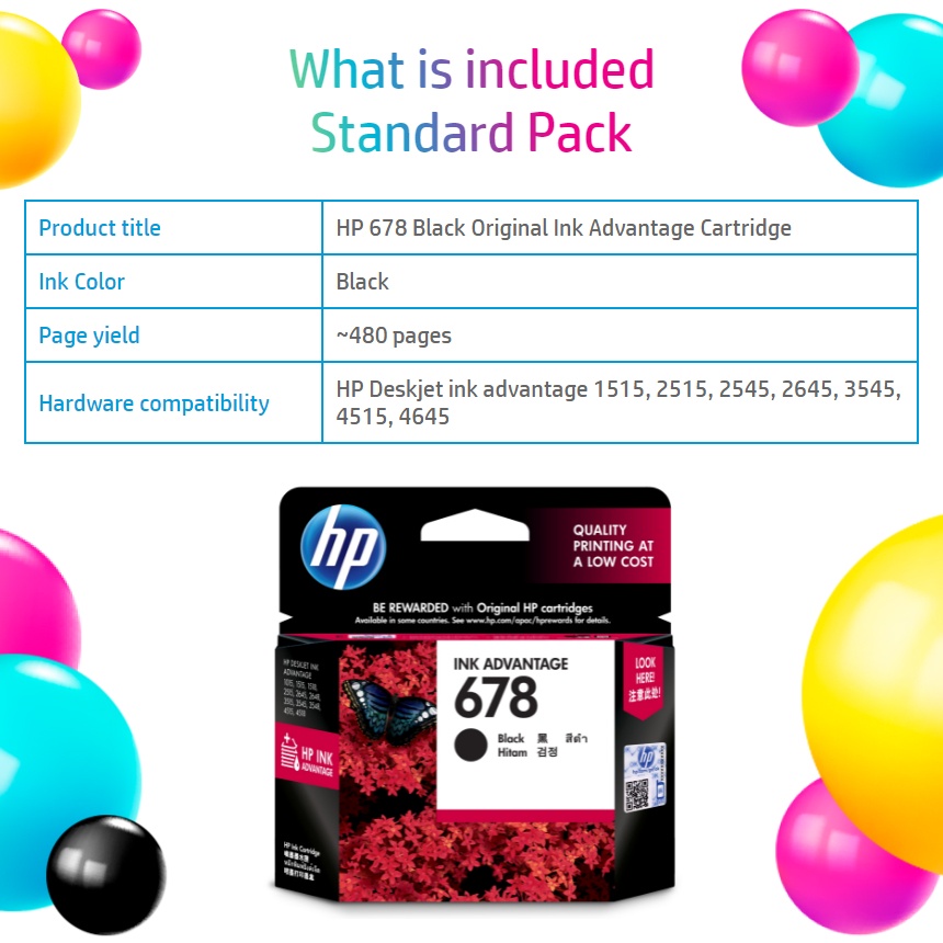 HP 678 Original Ink Advantage Cartridges - Black/Tri-Color