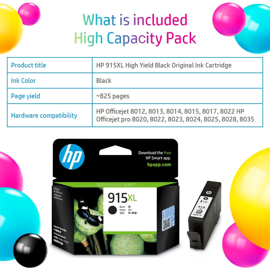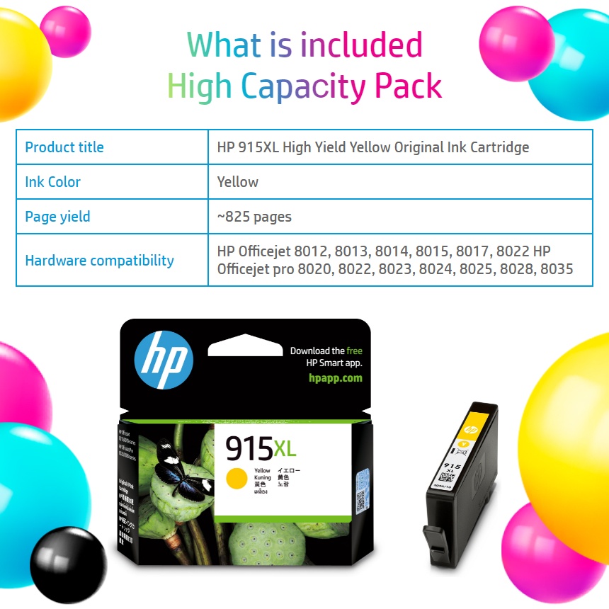HP High Yield Original Ink Cartridge - Black/Cyan/Yellow/Magenta 915/915XL