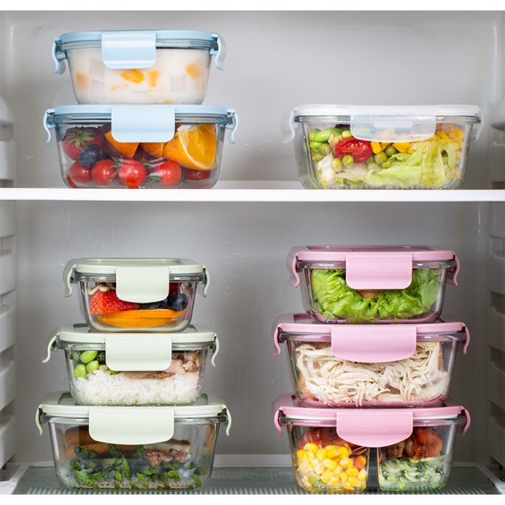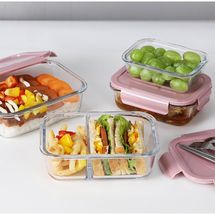Glass Lunch Box Food Storage Container Bekas Penyimpanan Makanan Segi Empat Kaca 耐热玻璃长方形保鲜便当盒
