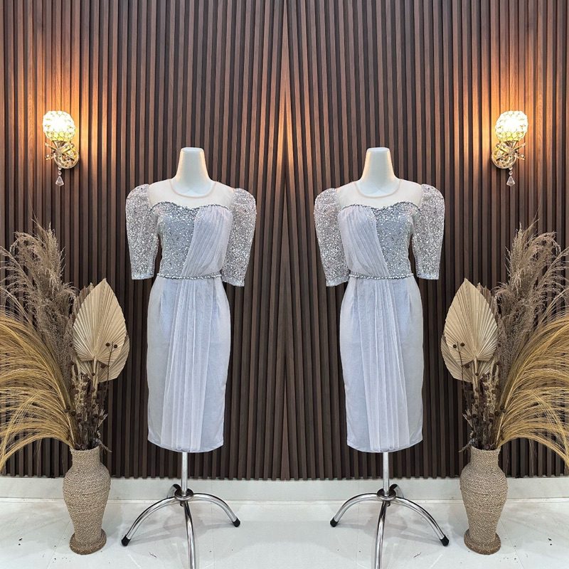 REVALINA-0020 || Velvet Dress Velvet Combination Squin Pearl Sequins and Tile Bridesmaid Dress / Party Dress