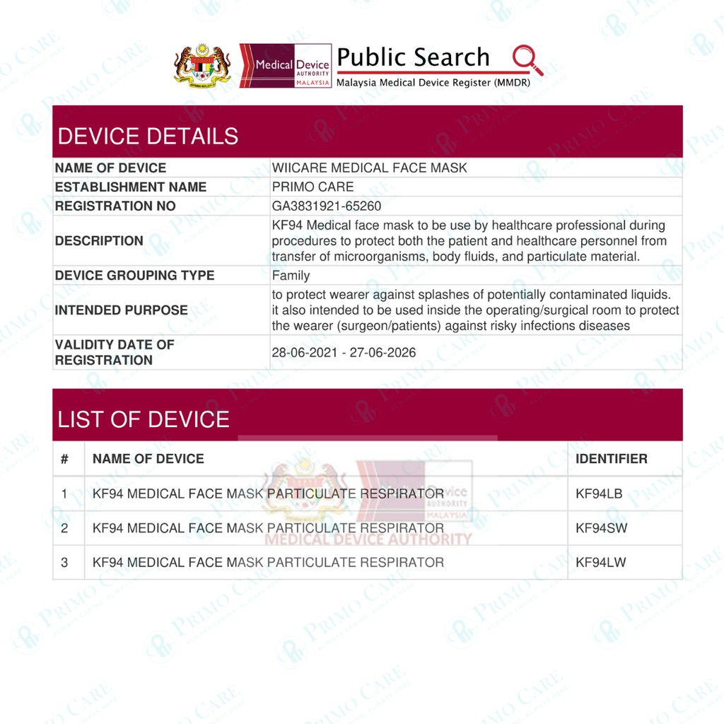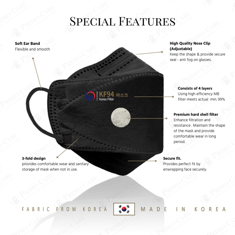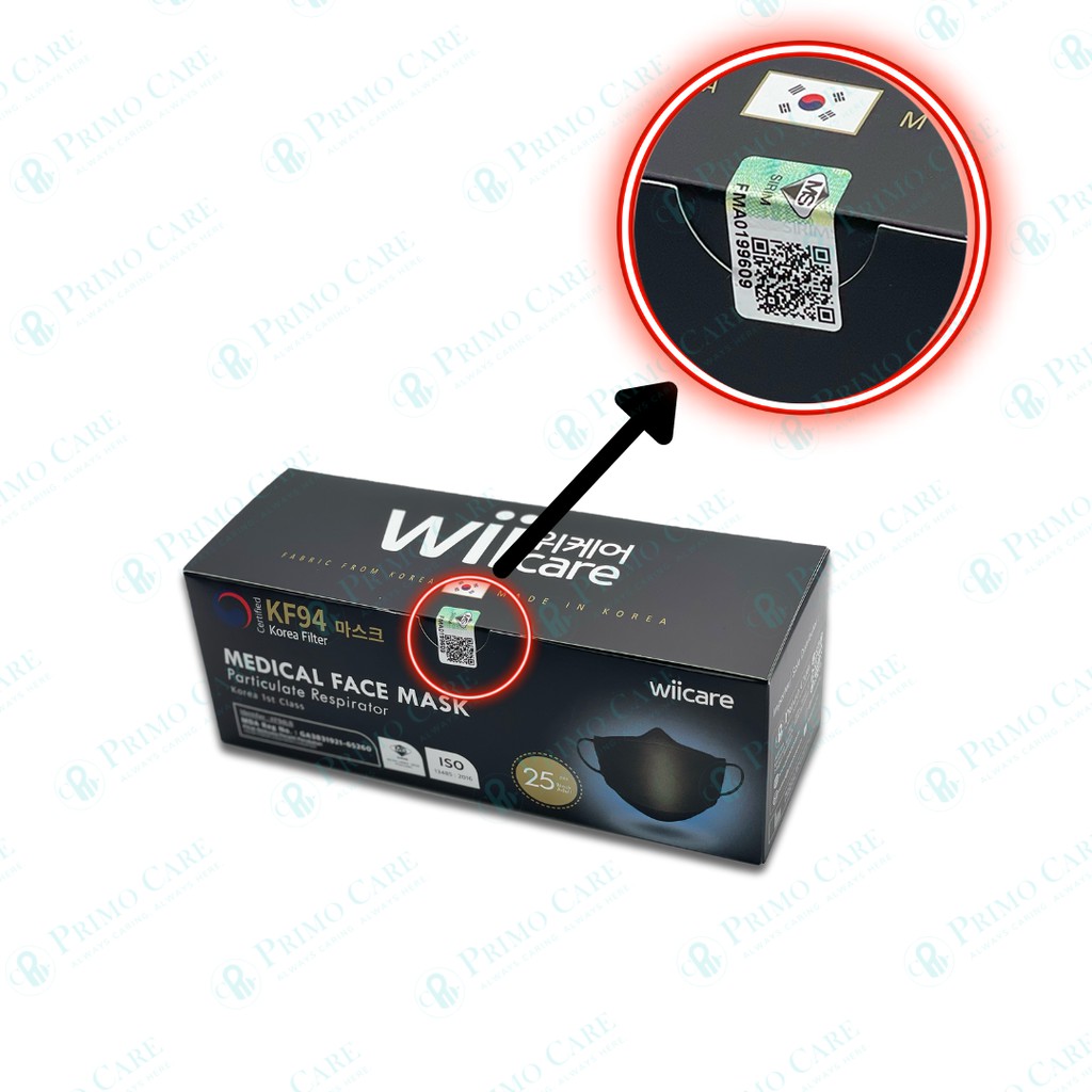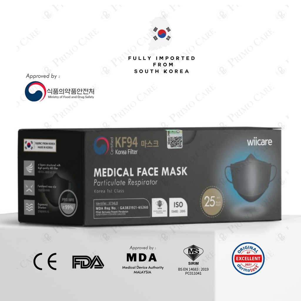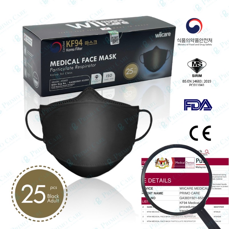 Wiicare KF94 MEDICAL FACE MASK & PARTICULATE RESPIRATOR | FFP2 | MADE IN KOREA | Ready Stock | 25pcs - BLACK (ADULT)