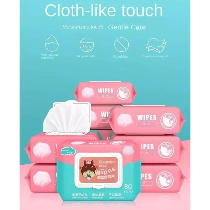 Runbeier Baby Wipes Wet Tissue Baby Alcohol Free 80's