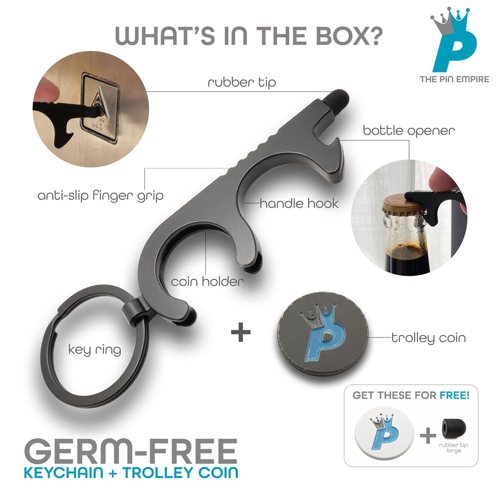 THE PIN EMPIRE Germ Free Keychain with Shopping Trolley Coin All In One Novelty Gift