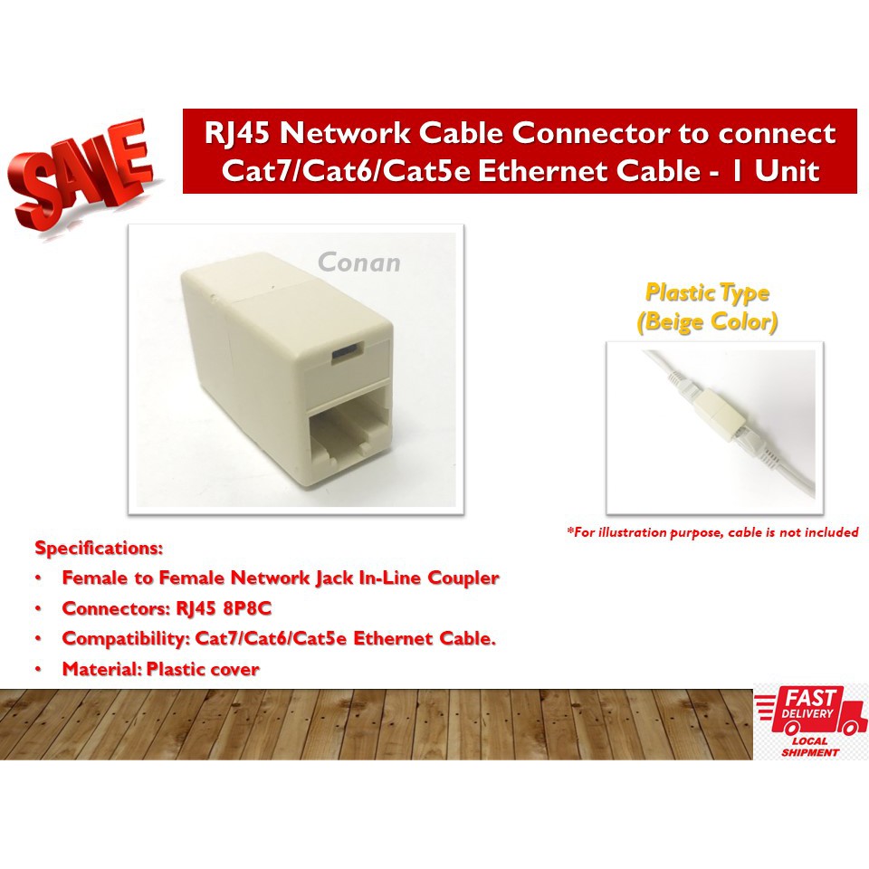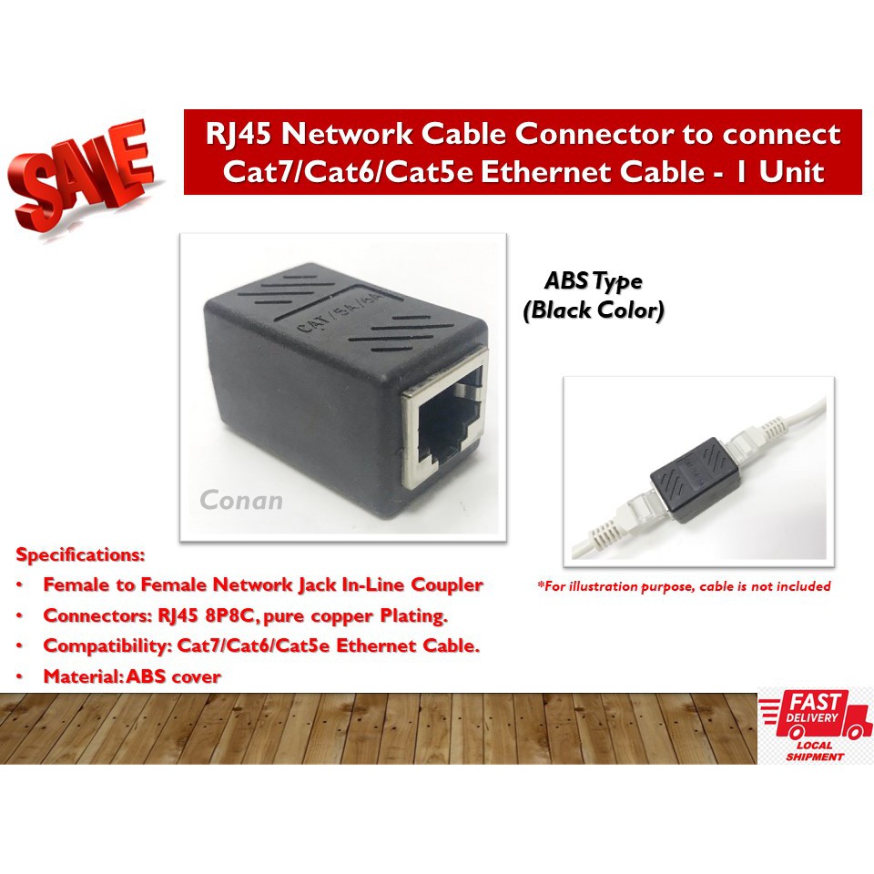 Network Cable Connector / RJ45 Cable Connector / Ethernet Cable Connector (to connect Cat7/Cat6/Cat5e Cable) - 1 Unit