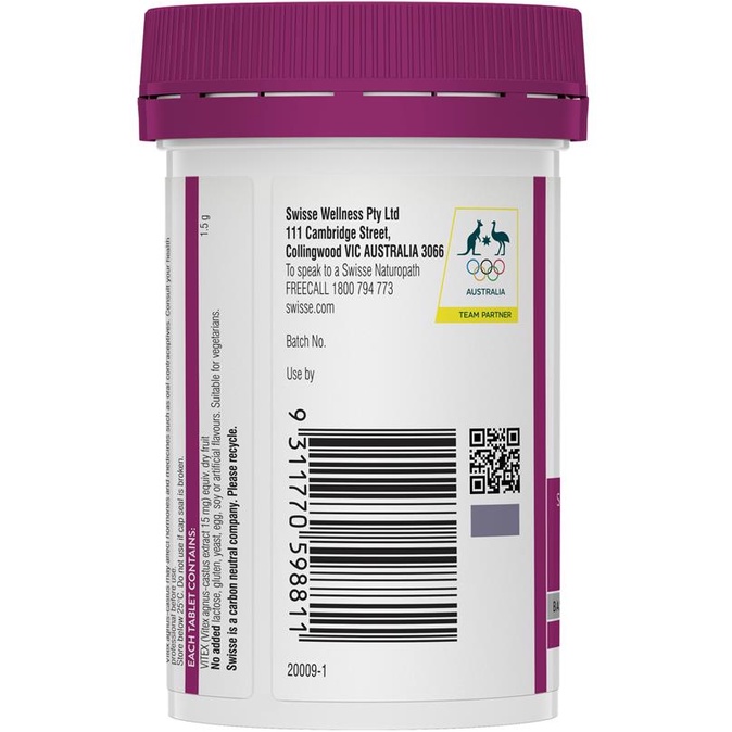 Swisse High Strength Organic Vitex 1500mg 60 Tablets