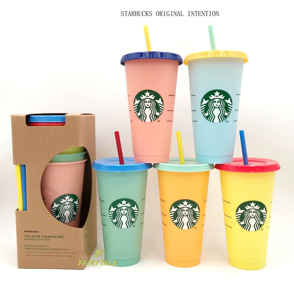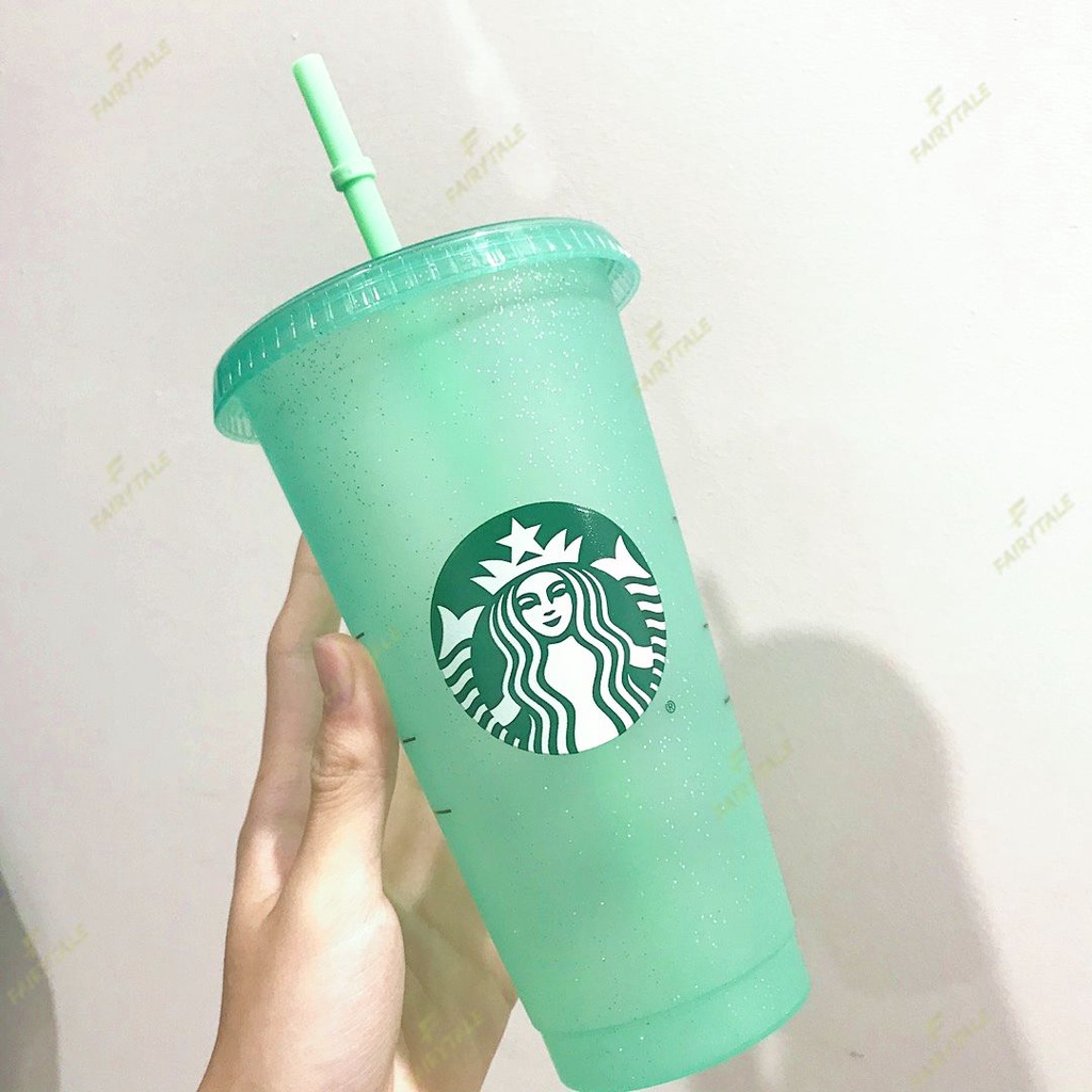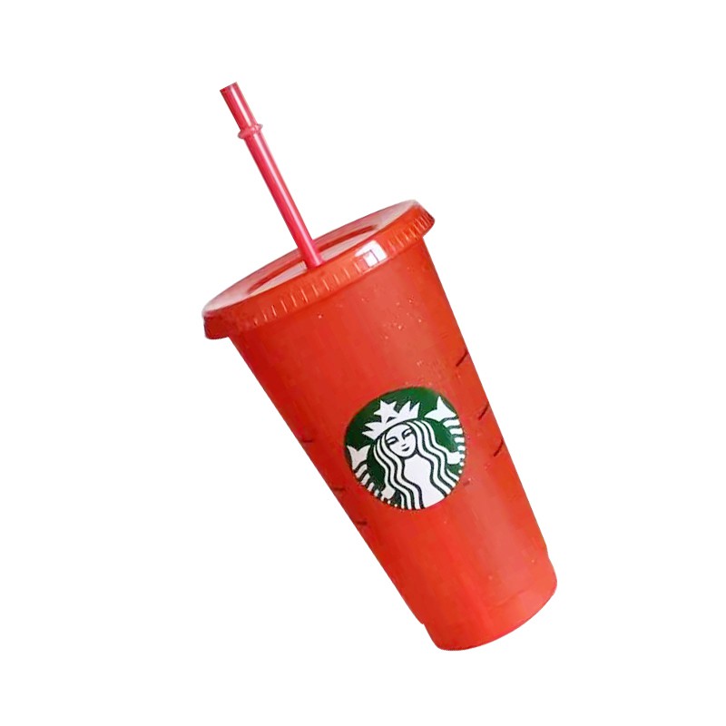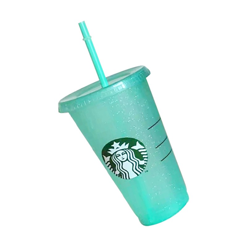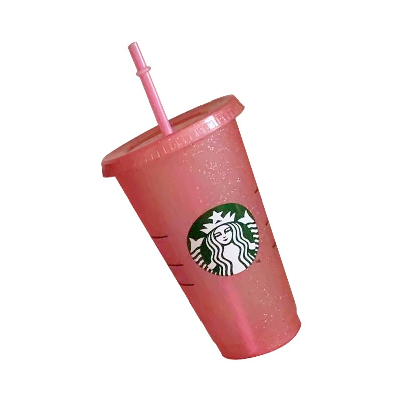 New Reusable Starbucks Color Changing Cold Cups Christmas Glittery Cup Plastic Tumbler with Lid Plastic Cup 24 oz