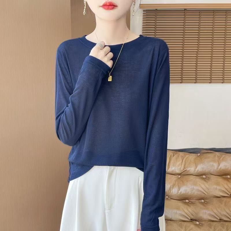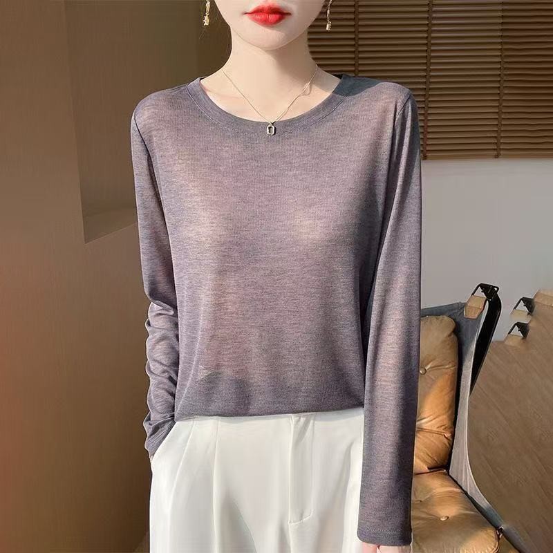 T-Shirt - Long Sleeve Women’s Top | Thin Round Neck | Loose Fit | Apricot Pink, Black, Red, White | Spring/Autumn