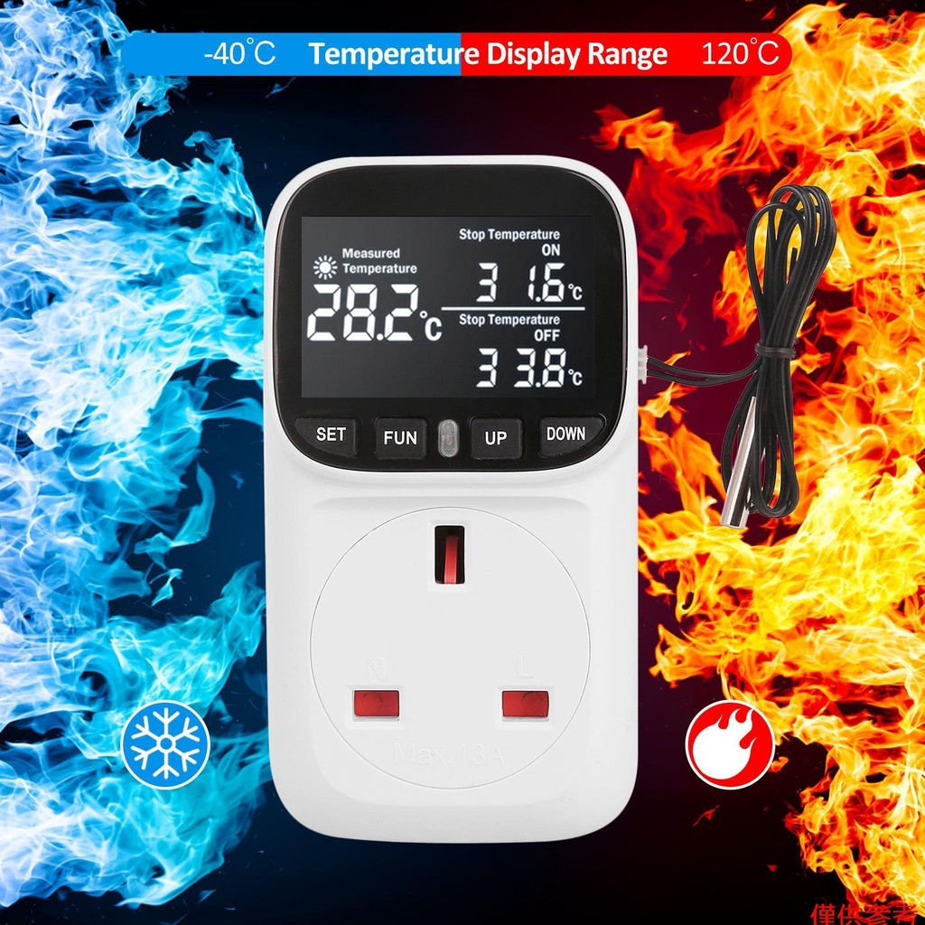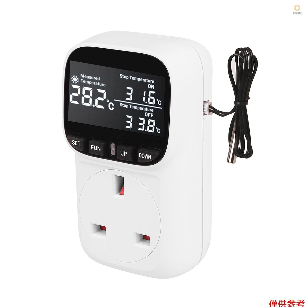 230V 13A Temperature Controller Socket High-Precision Digital Display Smart Thermostat Fish Tank Touch Screen Preset Timer Switch Cooling Heating Thermostat Socket Temperature Regu